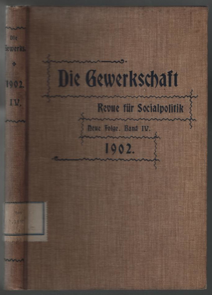 Wien: Verlag der Gewerkschaftskommission Oesterreichs 1902. Pův. plátěná vazba s titulem na hřbetu a přední desce, 256 stran psaných frakturou, 4° (15 x 23,5 cm