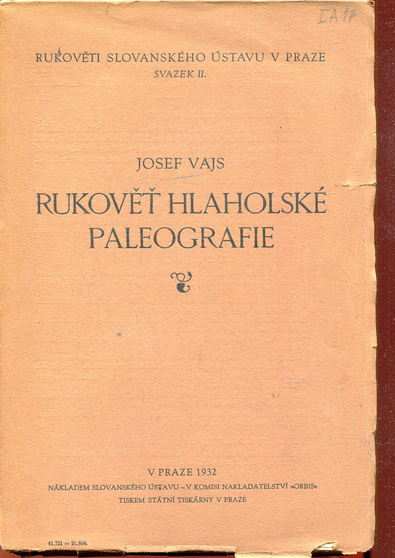 Stav pěkný, hrany stránek, mírně odřené a nepatrně ohnuté.