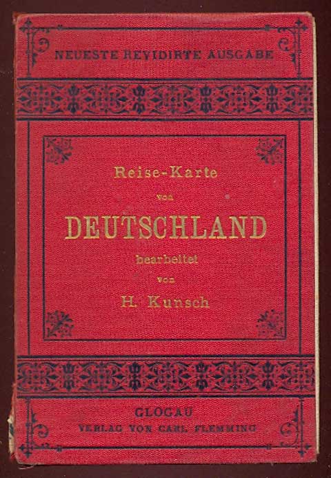 Glogau: Verlag von Carl Flemming, pův. celoplátěná desky, skládaná barevná litogr. mapa natažená na plátně, 8° (rozložená 65 x 88 cm)