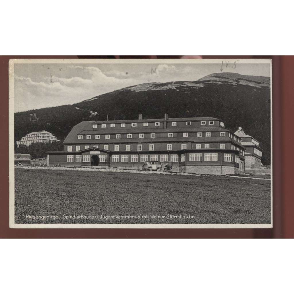 Stará pohlednice, prošlá, se zn., vzadu po obvodu stopy po přilepení; malý formát (cc..
