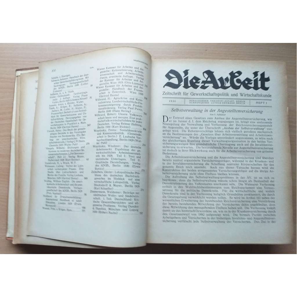 Vydání: Berlin: Verlagsgesellschaft des Allgemeinen Deutschen Gewerkschaftsbundes, GMBH 1930. Pův. plátěná vazba s titulem na hřbetu a přední desce, 860 stran, 4° (18 x 22 cm)