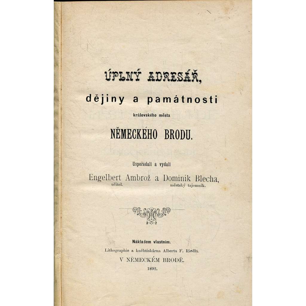 Úplný adresář: Dějiny a památnosti města Německého Brodu (Havlíčkův Brod, Německý Brod, 1892) + mapa