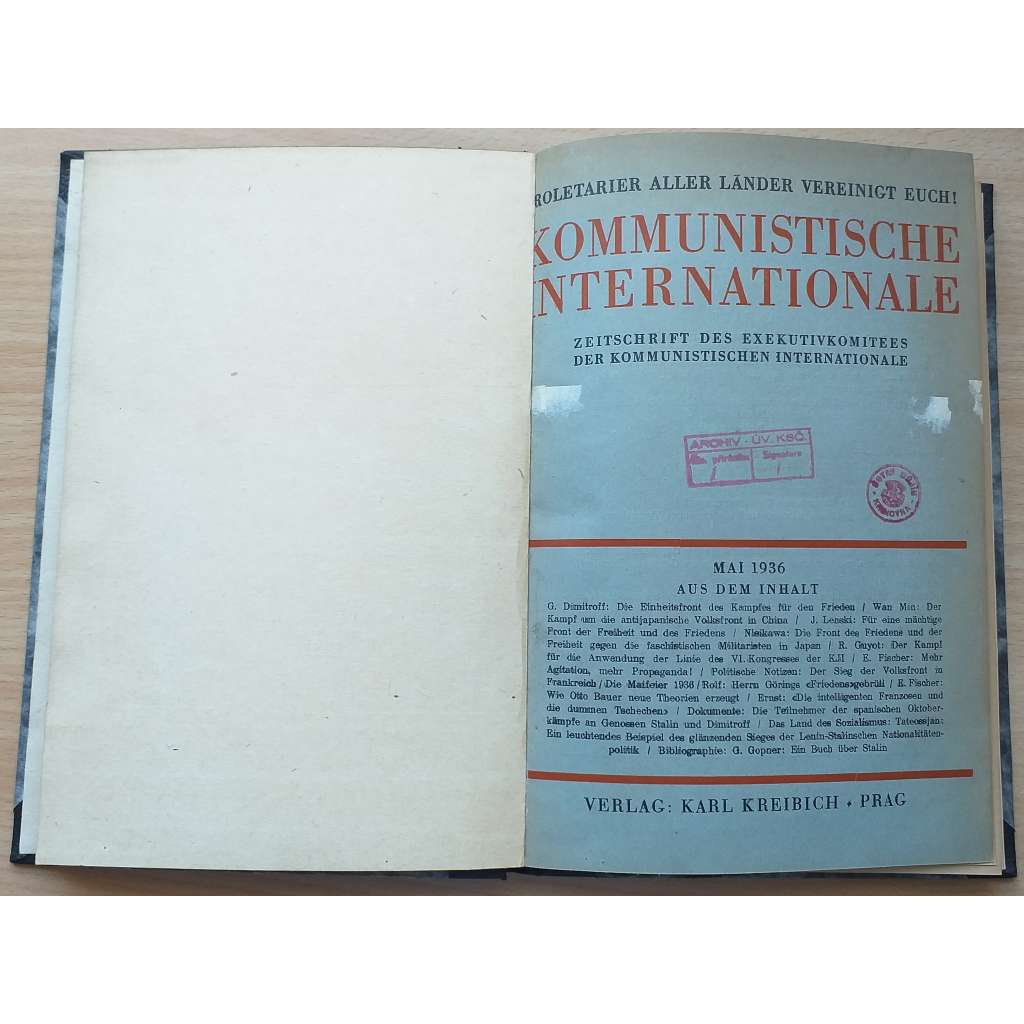 Časopis výkonného výboru Komunistické internacionály. Boj za mír, protijaponská lidová fronta v Číně, mírová fronta proti fašistickým militaristům v Japonsku, návrh ústavy SSSR, boj proti Hitlerovi a Habsburkům v Rakousku, agrese japonského imperialismu v Číně