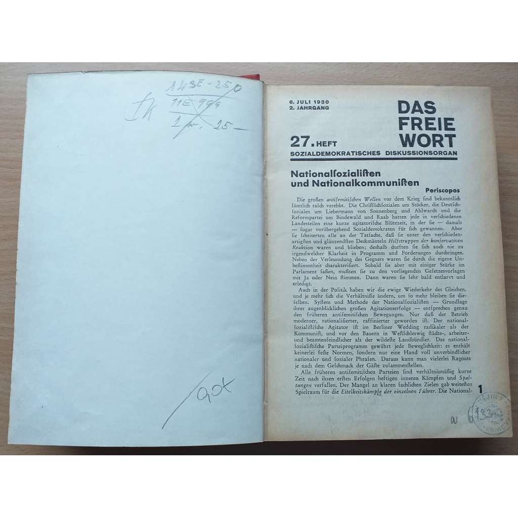 Das freie Wort II; 2. Jahrgang 1930, Nr. 27-52 [sociální demokracie]