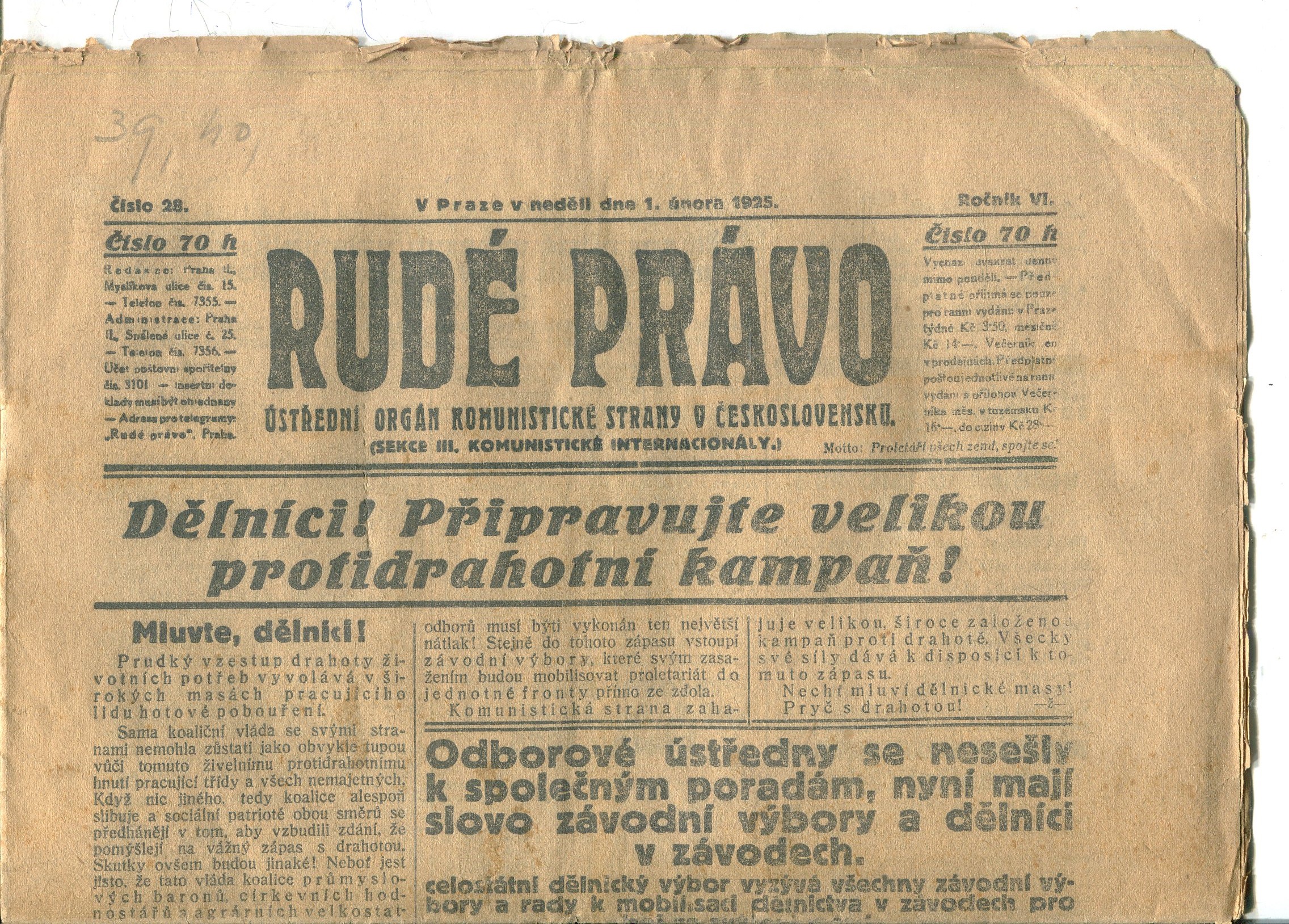 Staré noviny, přehnuté složky, rozměry: 28 x 38 cm. Stran pouze 6/8 + 2 strany Dělnická besídka