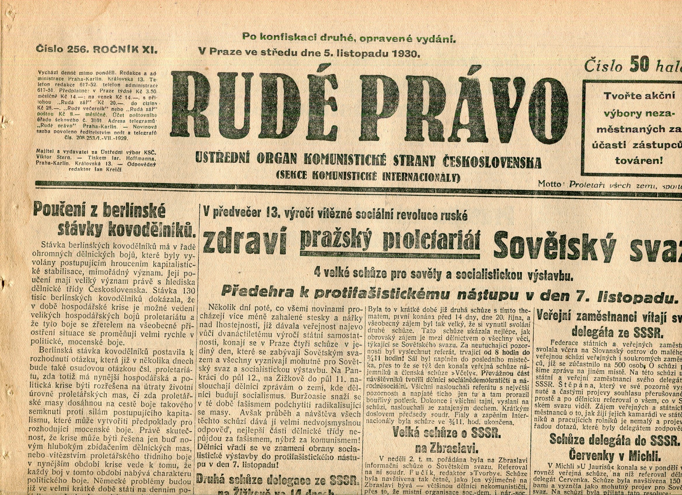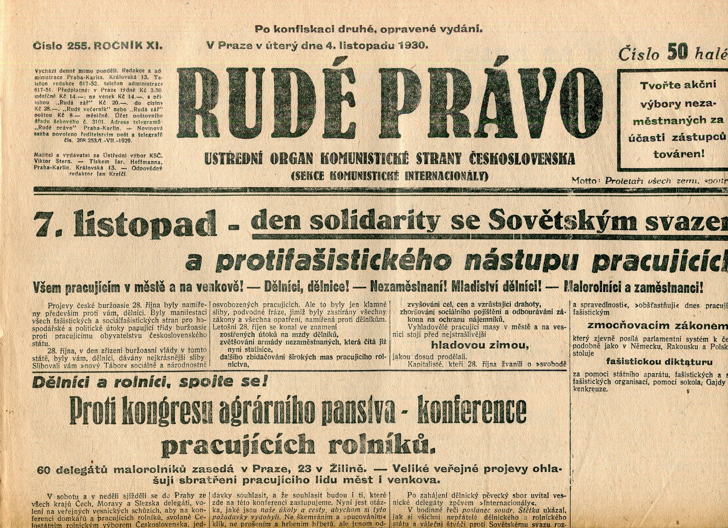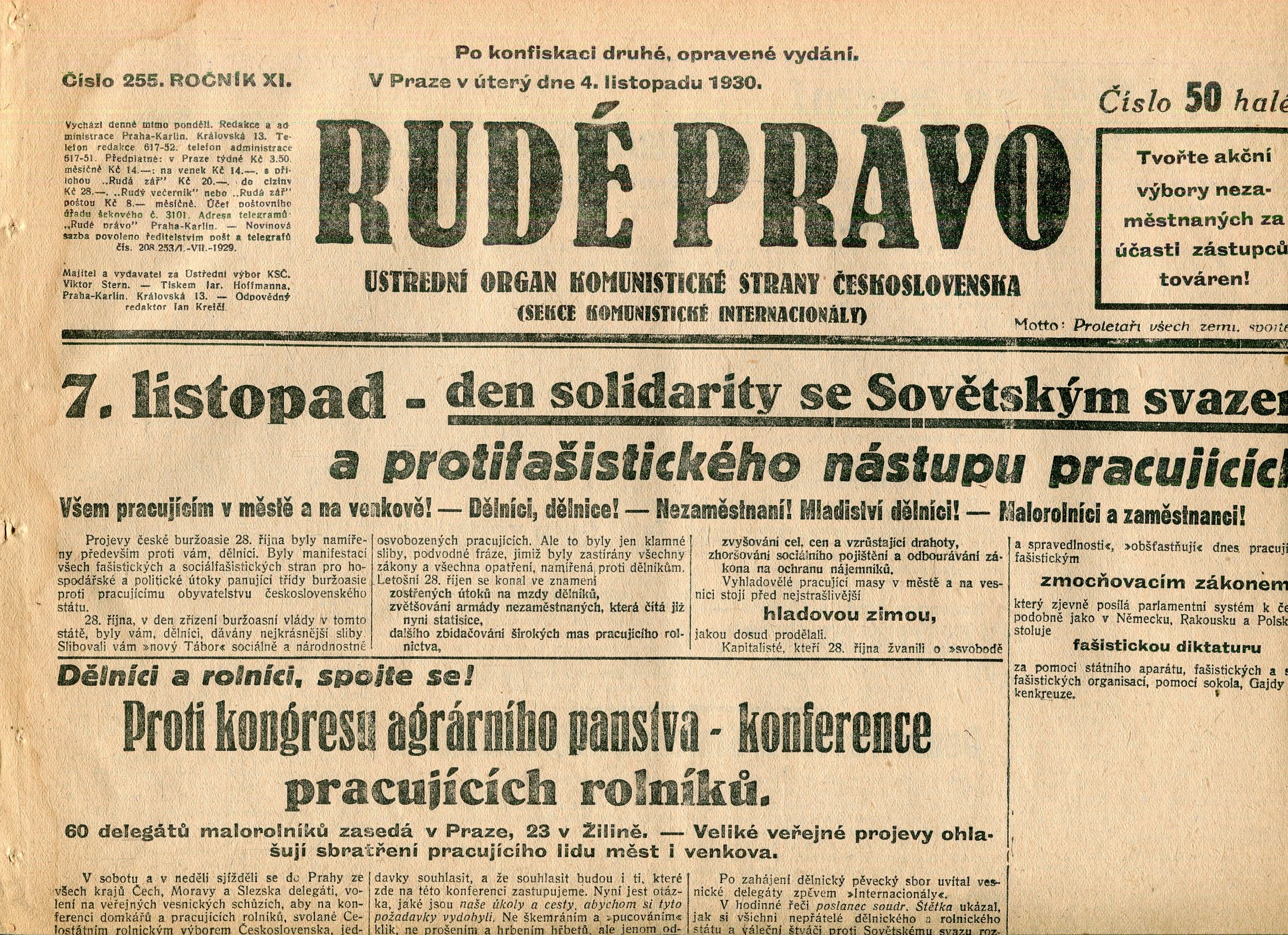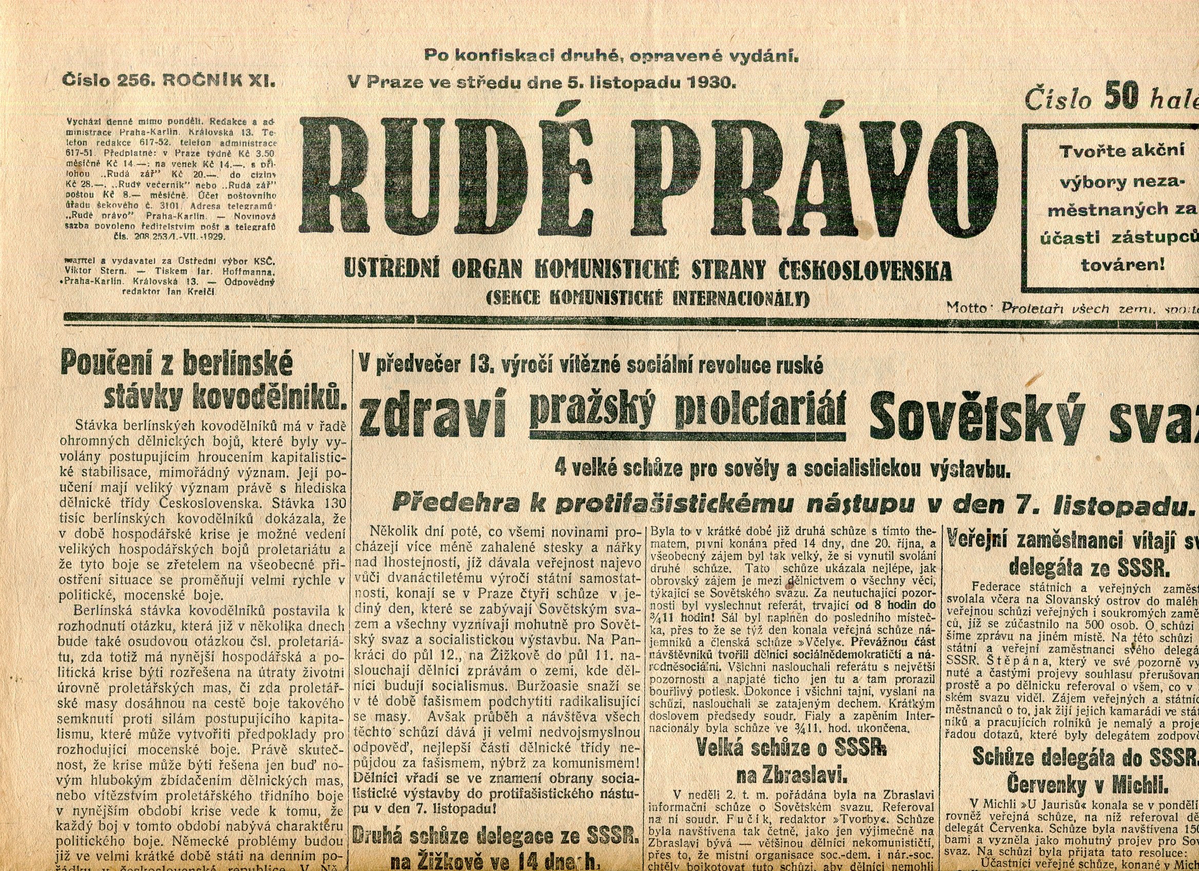Staré noviny, přehnuté složky, rozměry: 32 x 46 cm. Stran 8 + 4 strany Literární příloha