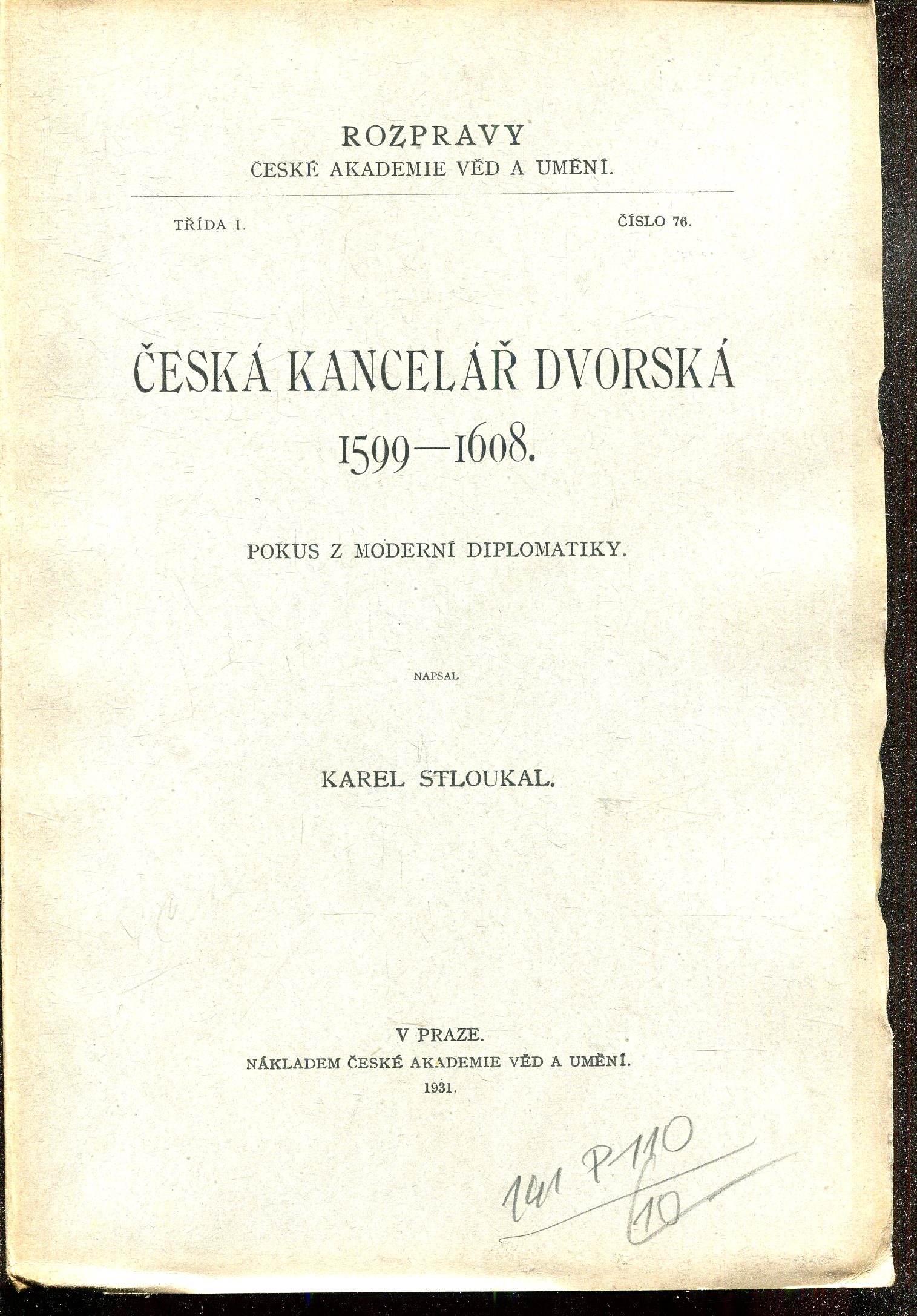 Nákladem České akademie věd a umění, Praha 1931. Měkká vazba, 288 stran + 81 faksimilií.