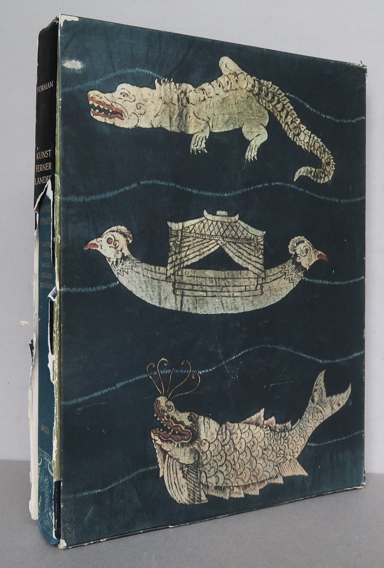 Prag: Artia 1956. Úvod napsal Prof. V. V. Štech, autoři textů: B. Forman, N. Frýd, L. Hájek, J. Hloucha, A. Hoffmeister, M. Oplt, V. Šolc, Z. Žaba. Umění čtyř světadílů z českých sbírek mimoevropského