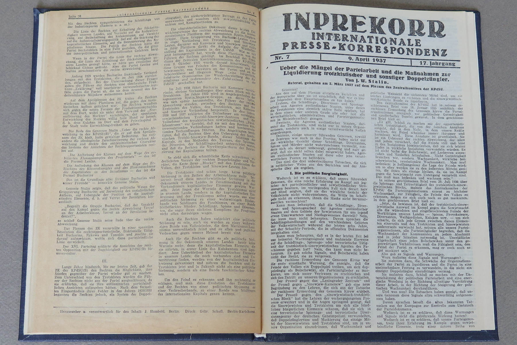 Velmi dobrý stav; obálka částečně ztmavlá a mírně opotřebovaná, pár listů podél okraje nepatrně opotřebovaných, výtisk byl mírně přehnut.