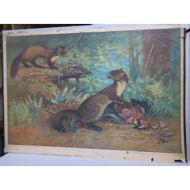 Kuna lesní a skalní, šelma, zvíře - přírodopis - školní plakát, výukový obraz (Stanislav Lolek)