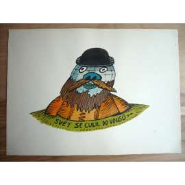 Svět se culil do vousů (Petr Poš , originál akvarel, televizní titulky, razítko ČST)