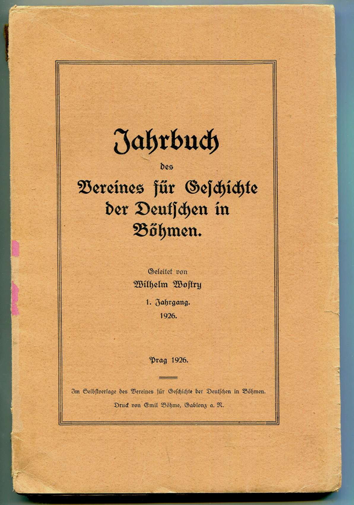 Prag: Im Selbstverlage des Vereines für Geschichte der Deutschen in Böhmen, gedruck von Emil Böhme, Gablon a.N. 1926.