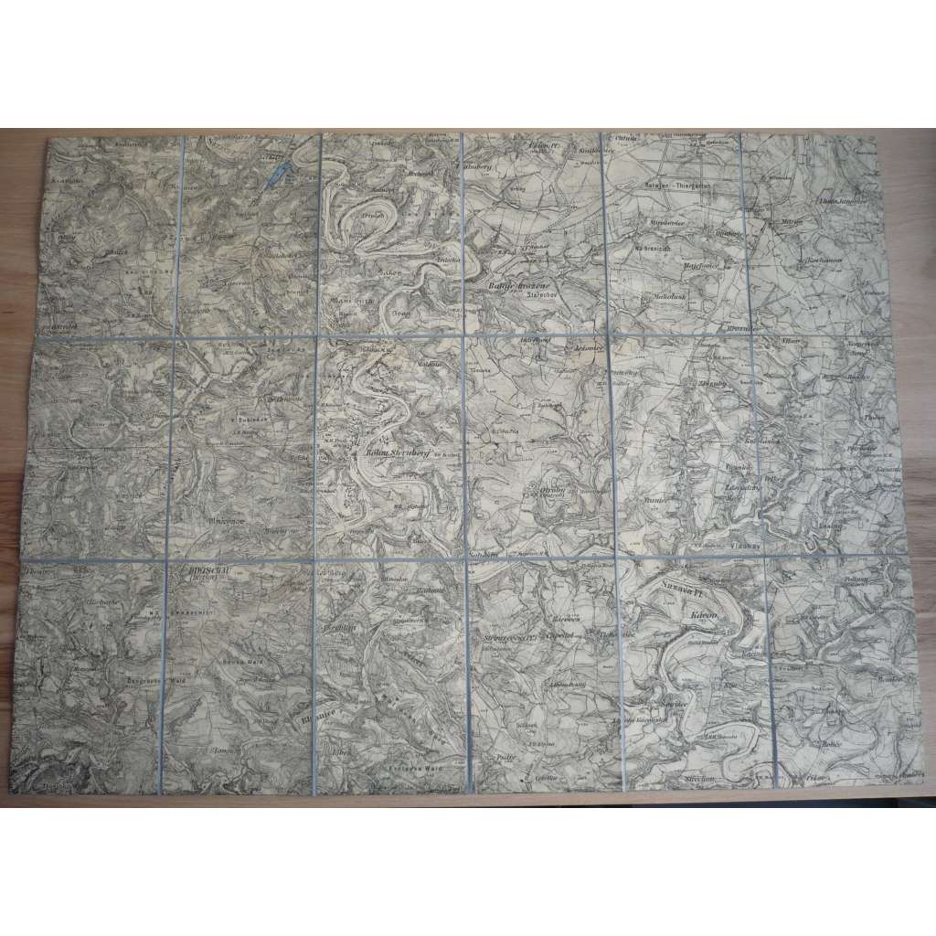 dvoubarevná litografická mapa podlepená plátnem, skládaná, Praha: Vojenský zeměpisný ústav mezi lety 1918 a 1936, rozměry rozložené mapy: 1:75 000