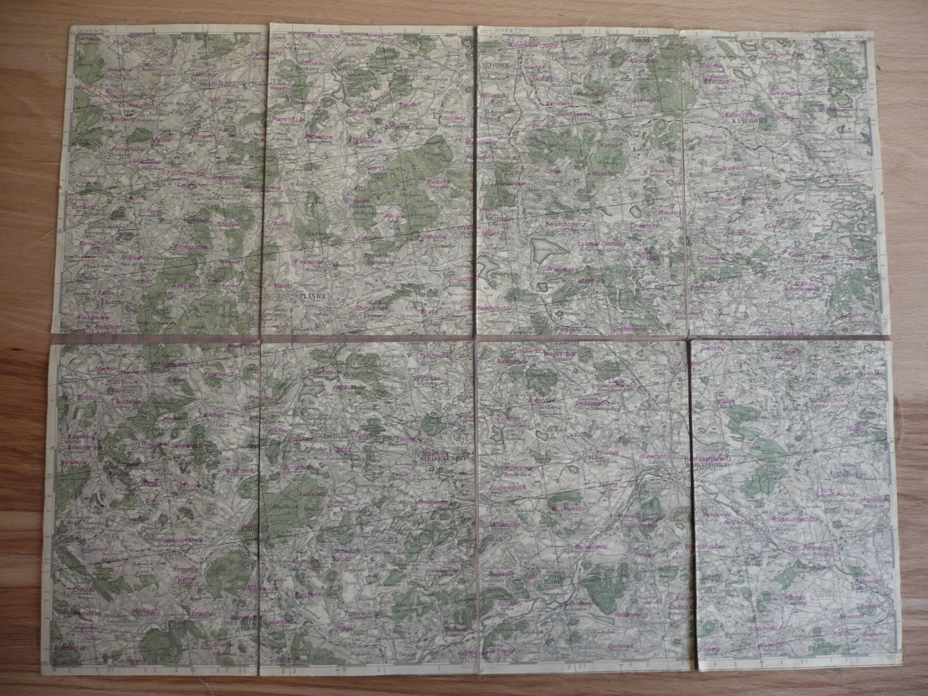 Stav velmi slušný, obálka odřená a zašpiněná, kraje otřepené, některé mapy barevně vybarvené pastelkou.