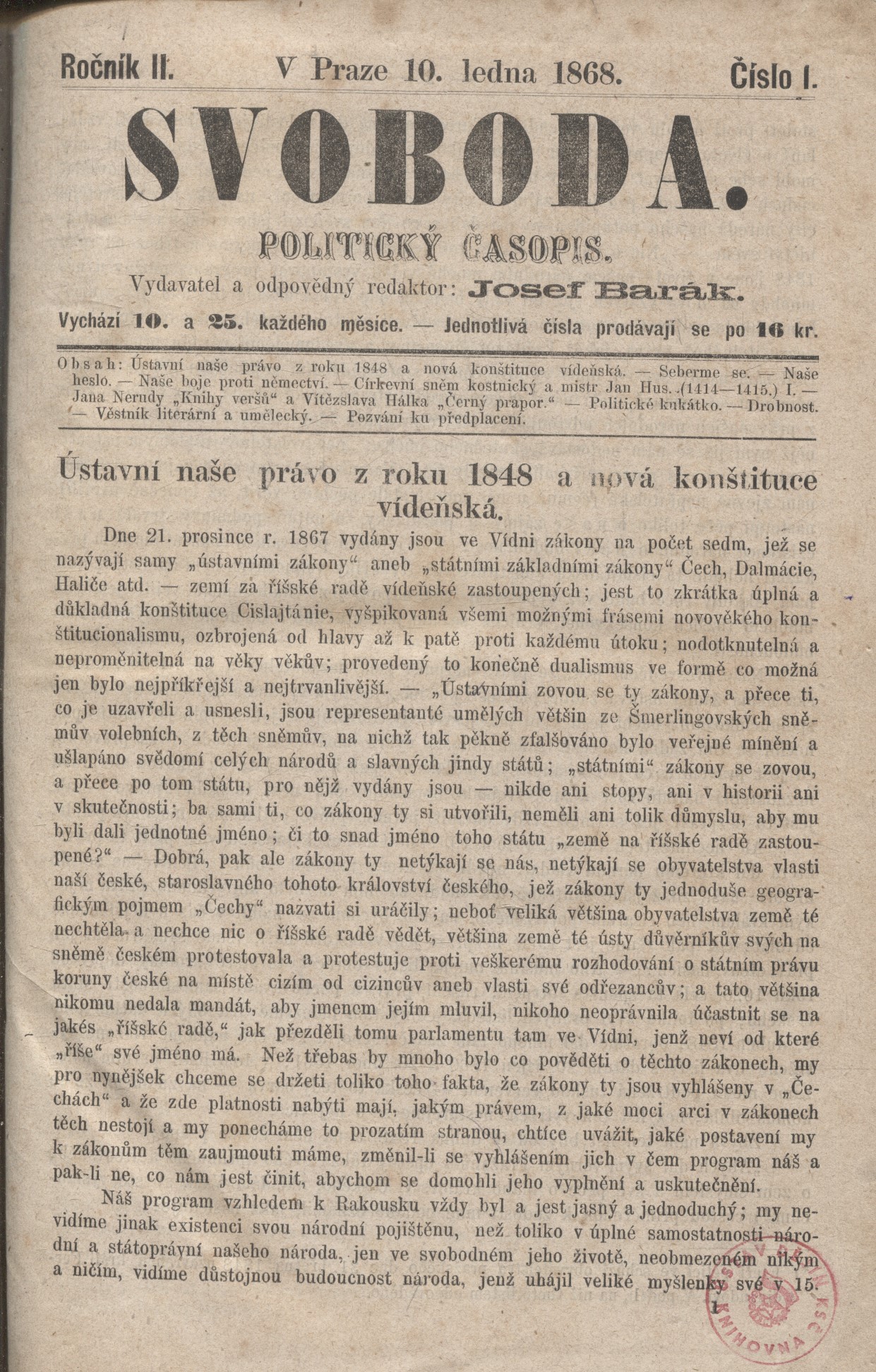 Poetických besed č. XXXV. Ed. Grégr a Ed. Valečka, Praha 1888. Původní poloplátěná vazba, 12°, 68 st..