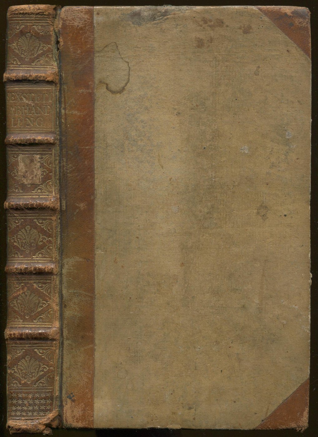 Štítky se signaturami na předních deskách a hřbetu, okraje desek trochu odřené, exlibris na přídeští a razítko předchozího majitele na titulní straně, papír vzhledem ke stáří ve větném zrcadle zahnědl