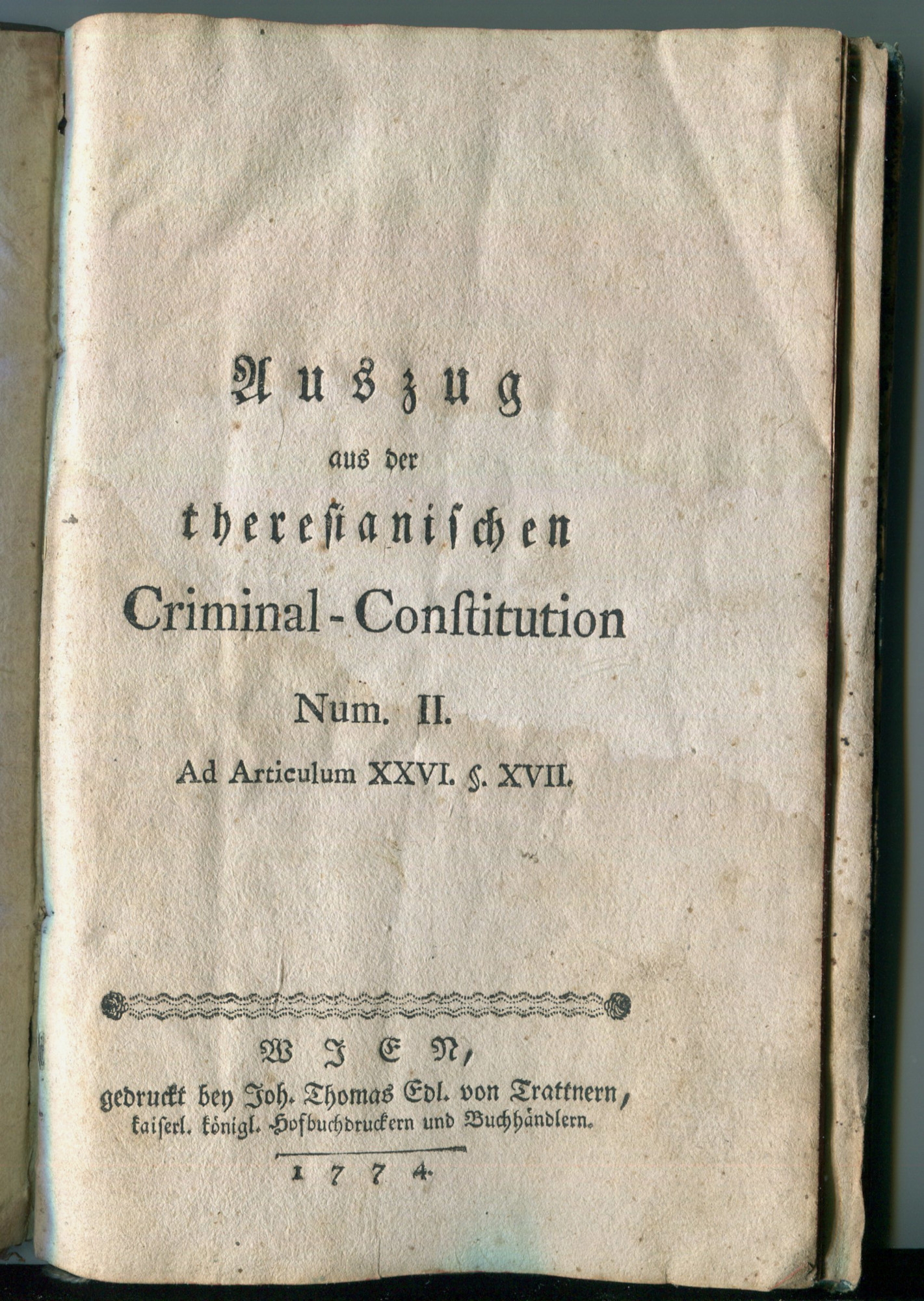 Wien: Gedruckt bey Johann Thomas Edl. von Trattnern, kaiserl. königl. Hofbuchdruckern und Buchhändlern 1783, váz., [2]+246+[2] s., 12° (10,5 x 17,5 cm)