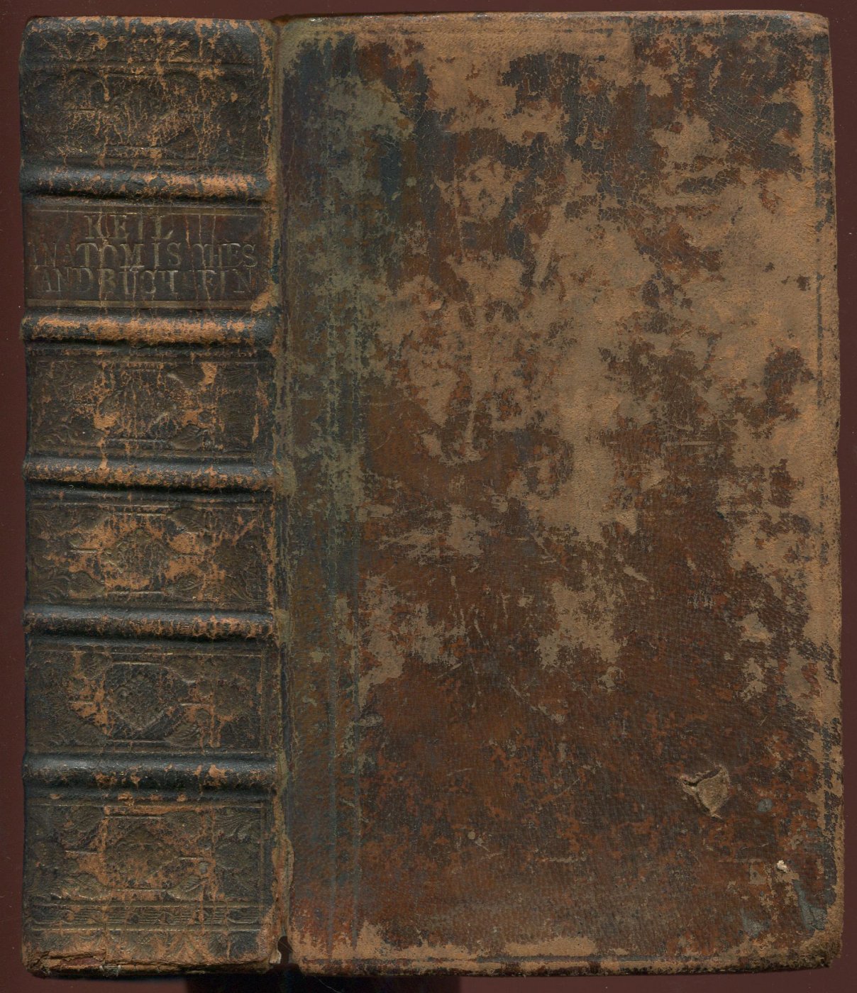 Velmi dobrý stav; kůže opotřebovaná a trochu odřená, s drobnou ztrátou na hřbetu, rohy desek mírně naražené, ořízka zažloutlá, horní ořízka ztmavlá, cca 20 stránek s vybledlou, nevýraznou skvrnou od v