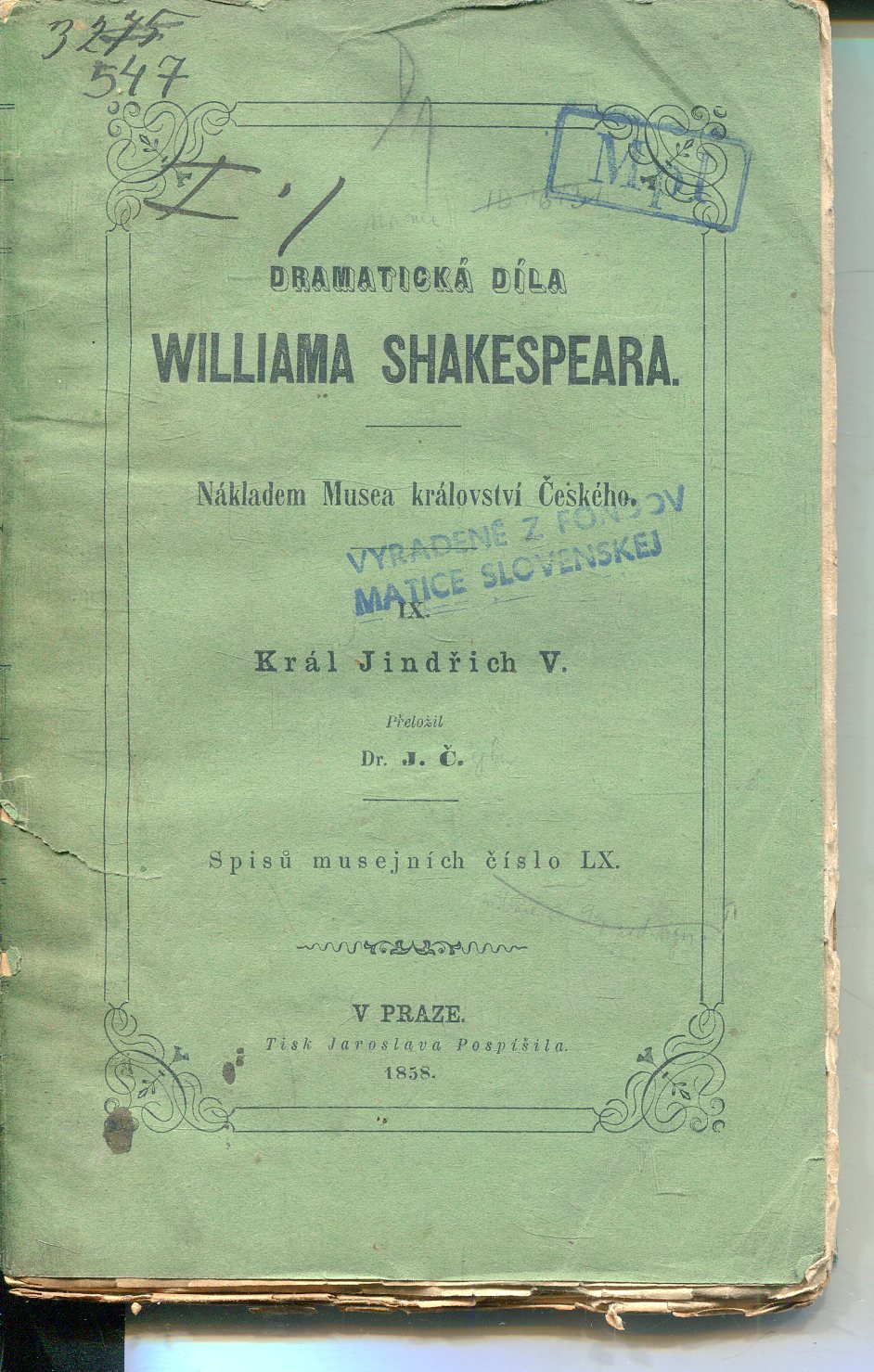 Dobrý stav, desky a hřbet jsou odřené. Uvnitř knihy jsou skvrnky od stáří.