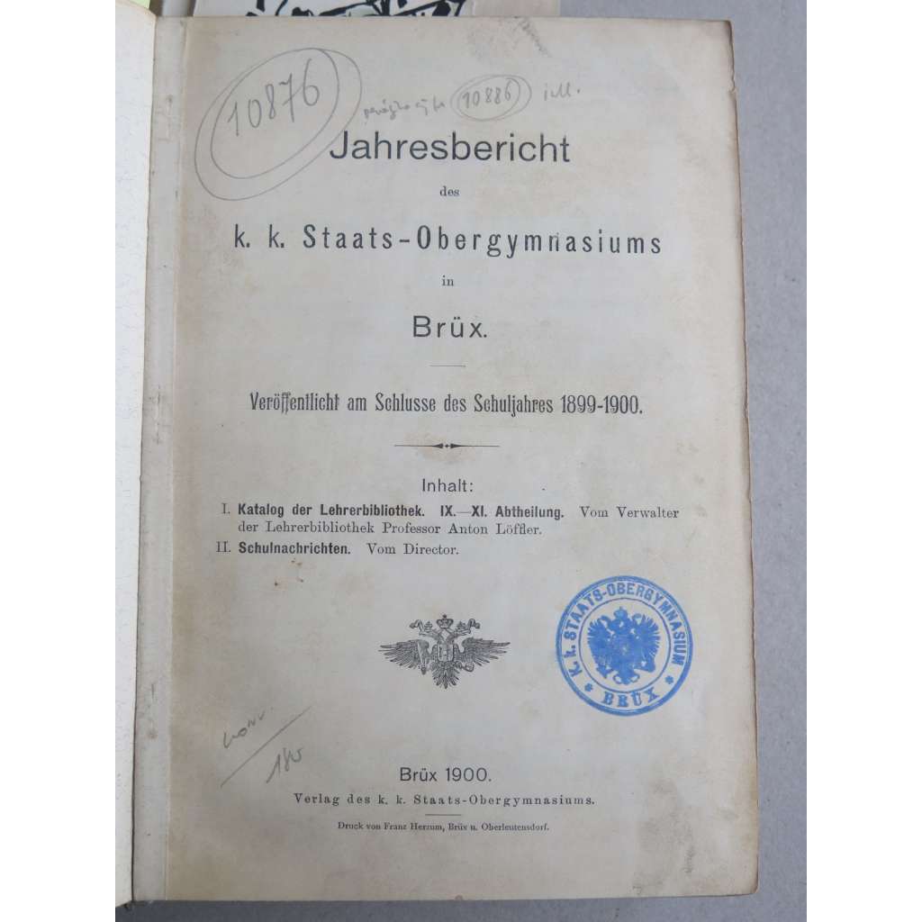Gymnázium Most (Brux) - 11 x výroční zpráva (1890-1910). Jahresbericht des Communal-Obergymnasiums in Brüx (11 Hefte)