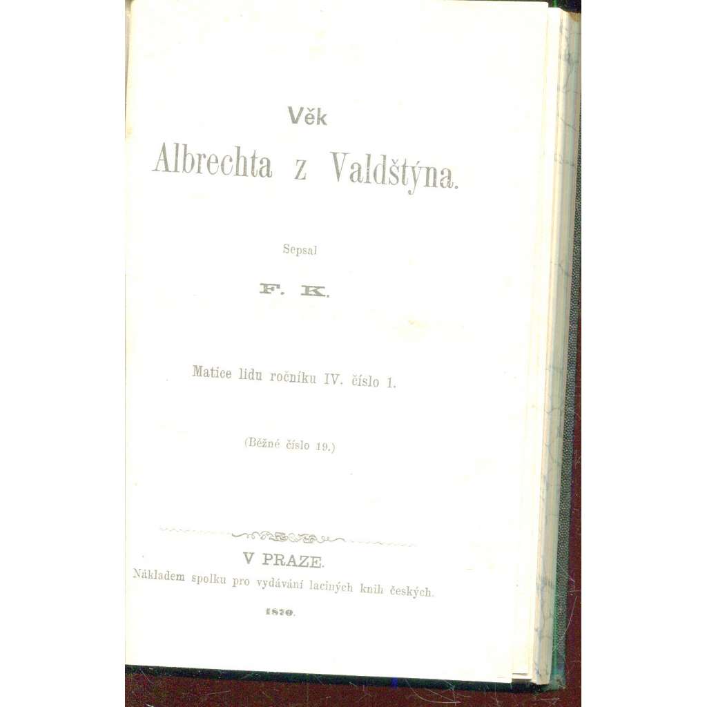 Věk Albrechta z Valdštýna. Matice lidu, ročníku IV., číslo 1 (běžné číslo 19). Nákl. spolku pro vydávání laciných knih českých, Praha 1870
