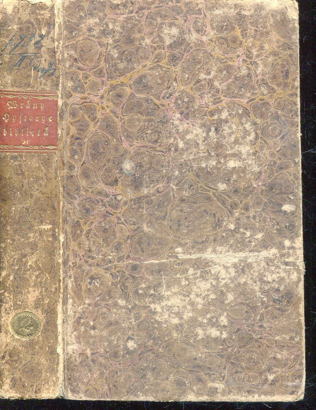 Stav dobrý, desky a hřbet jsou výrazněji odřené, desky ušpiněné, hřbet v dolní části natržený. Kniha byla zřejmě politá - na většině stránek je skvrnka - vše suché a čitelné.