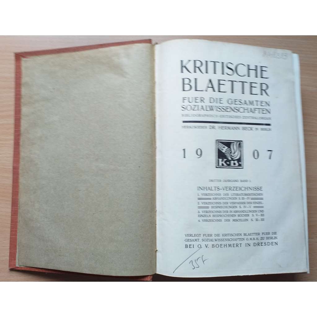 Kritische Blaetter fuer die gesamten Sozialwissenschaften; dritter Jahrgang, Band I. [sociální vědy]