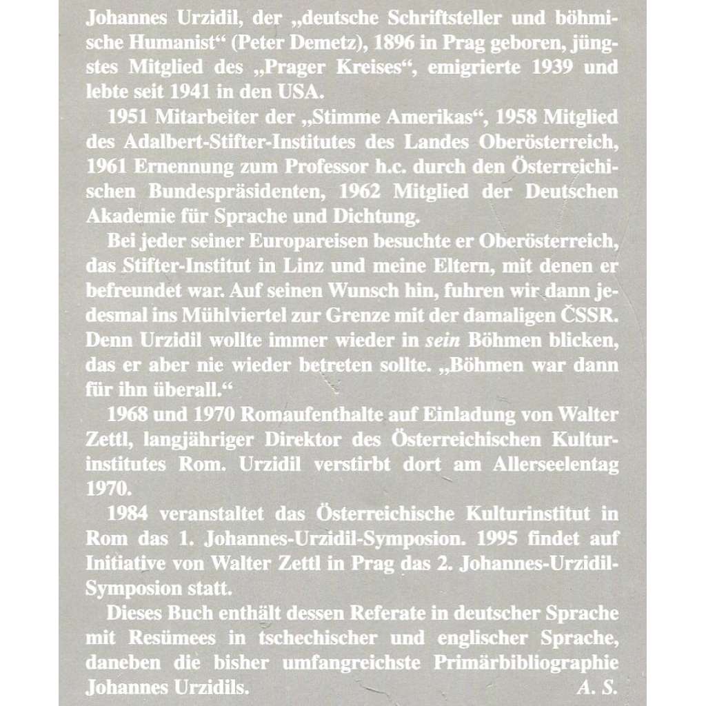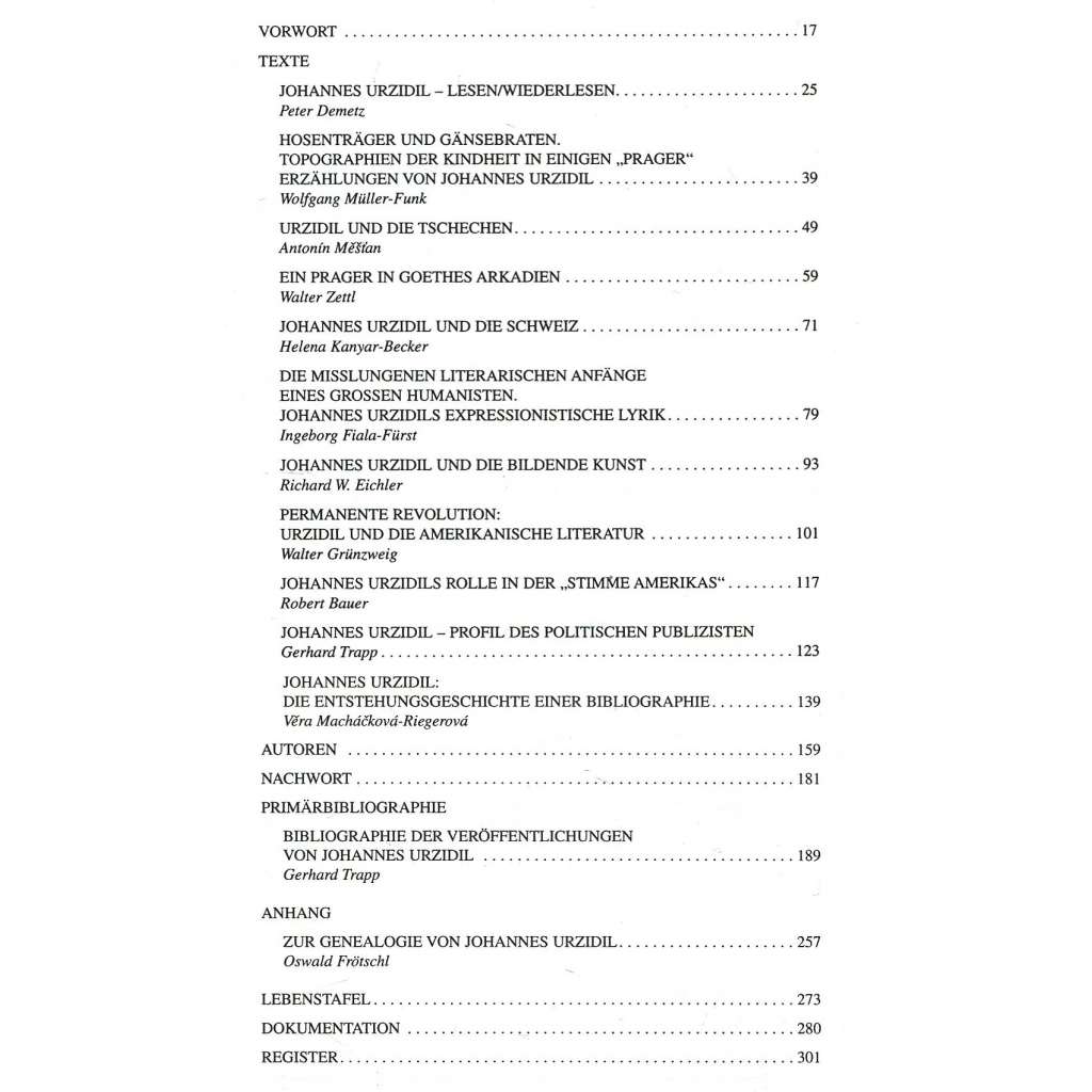 Sborník příspěvků z konference věnované německojazyčnému pražskému spisovateli. Zařazena je i Urzidilova bibliografie. Viz naskenovaný obsah.