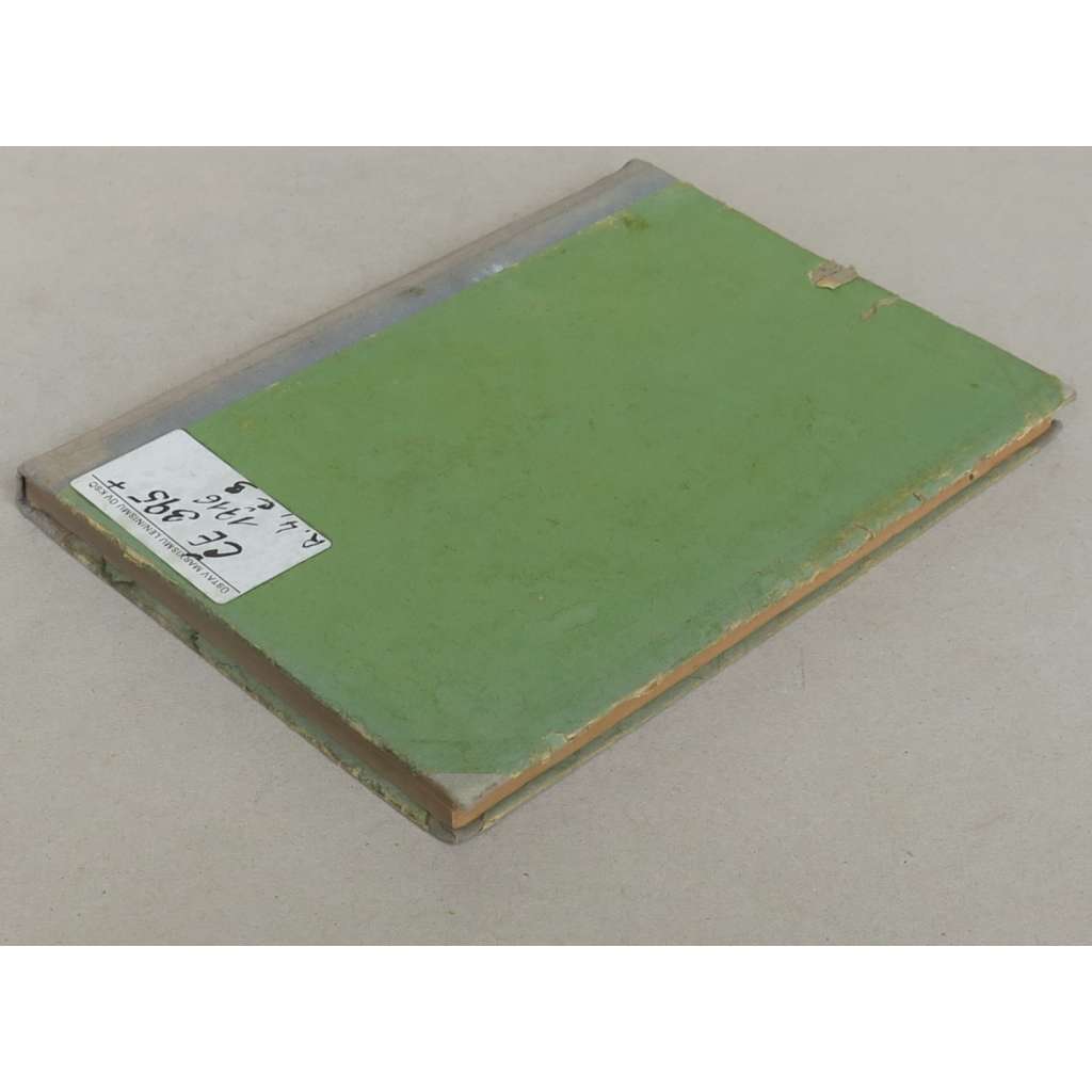 Stav knihy: Dobrý stav; desky opotřebované a naražené, na zadní desce je nalepen štítek, na přední předsádce a některých stranách jsou razítka a signatury, na přední předsádce je nalepena i papírová kapsa, několik stránek s pár žlutými skvrnkami od stáří.