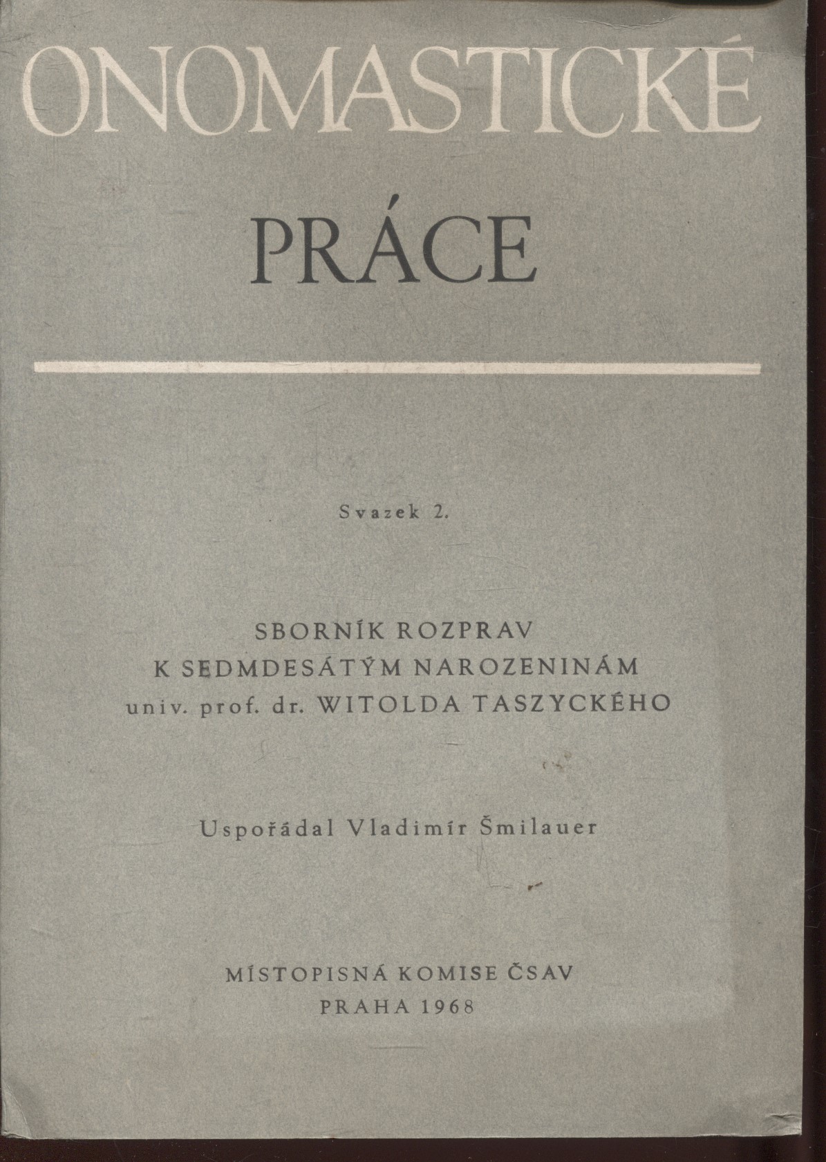 Zvláštní příloha Zpravodaje Místopisné komise ČSAV 1967. Brožovaná, 289 stran. Rozměry: 14,5 x 20 cm.