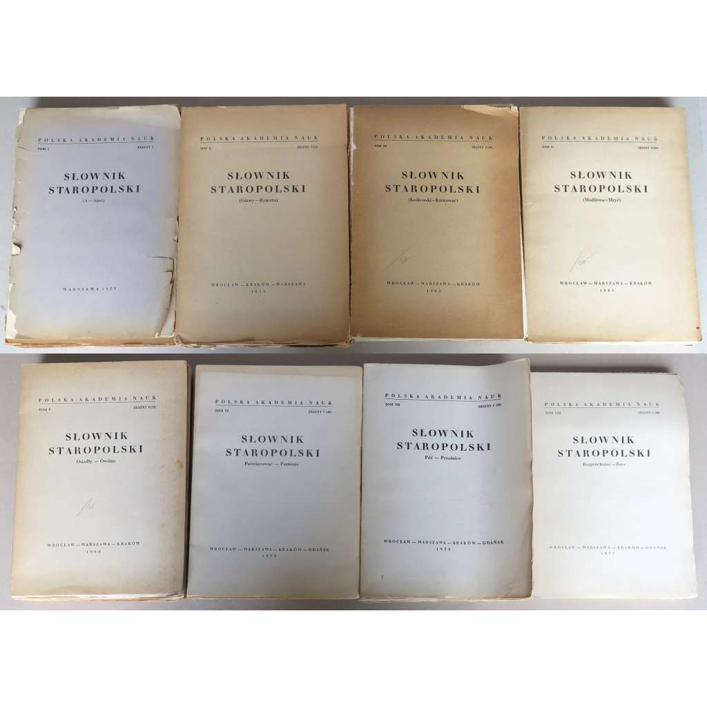 V dobrém stavu. Obálky jsou zašpiněné a po okrajích lehce odřené. Druhý svazek nemá obálku.