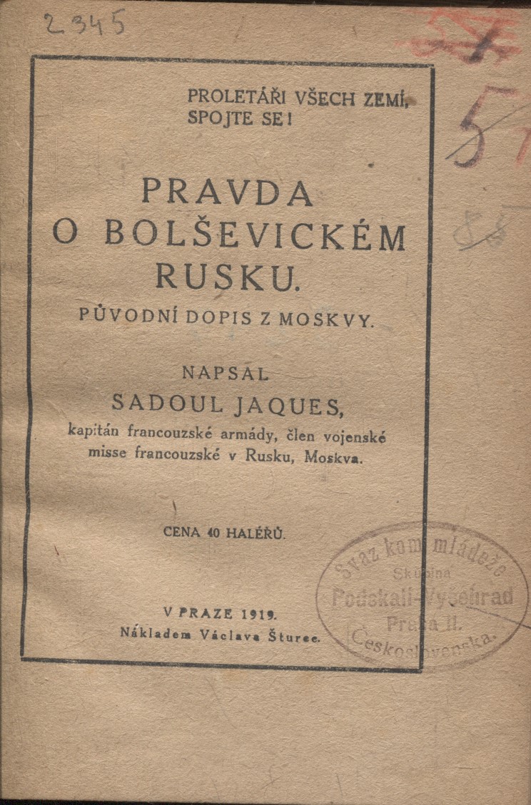 Druhé vydání po konfiskaci, bez nakladatelských údajů a vročení (zřejmě počátek století). Slepá polo..