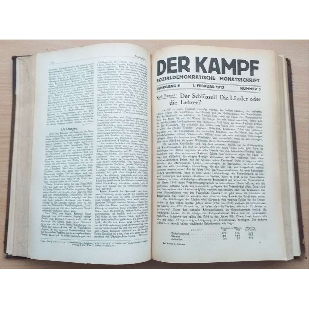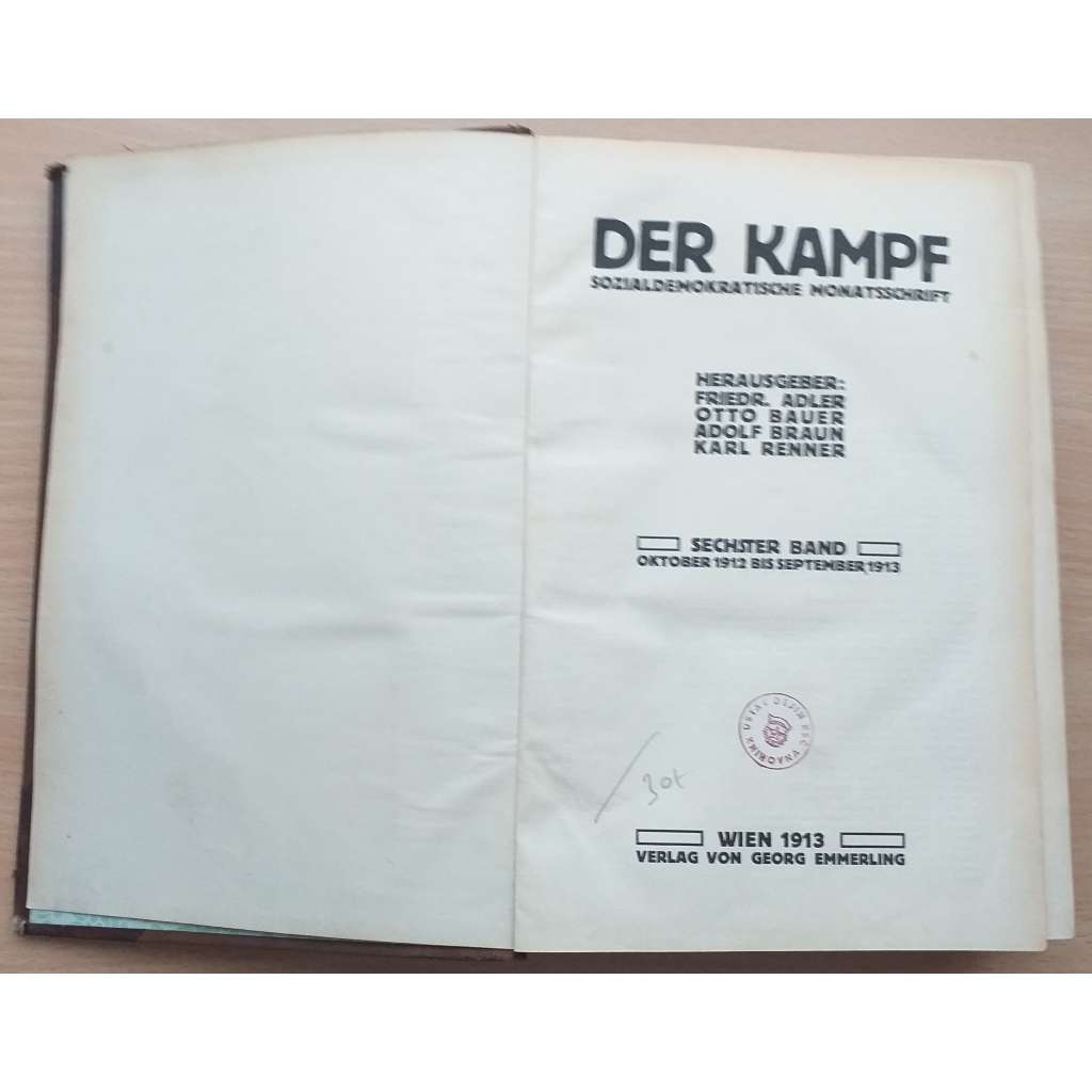 Der Kampf. Sozialdemokratische Monatsschrift. Sechster Band (Oktober 1912 bis September 1913); Hefte 1-12 [sociální demokracie]