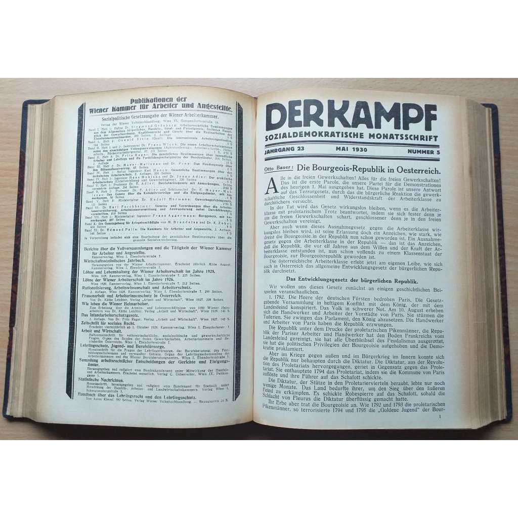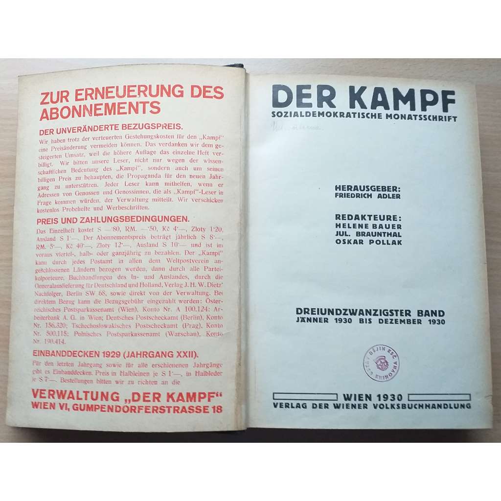 Der Kampf. Sozialdemokratische Monatsschrift. Dreiundzwanzigster Band. Jänner 1930 bis Dezember 1930; Nr. 1-12 [sociální demokracie]