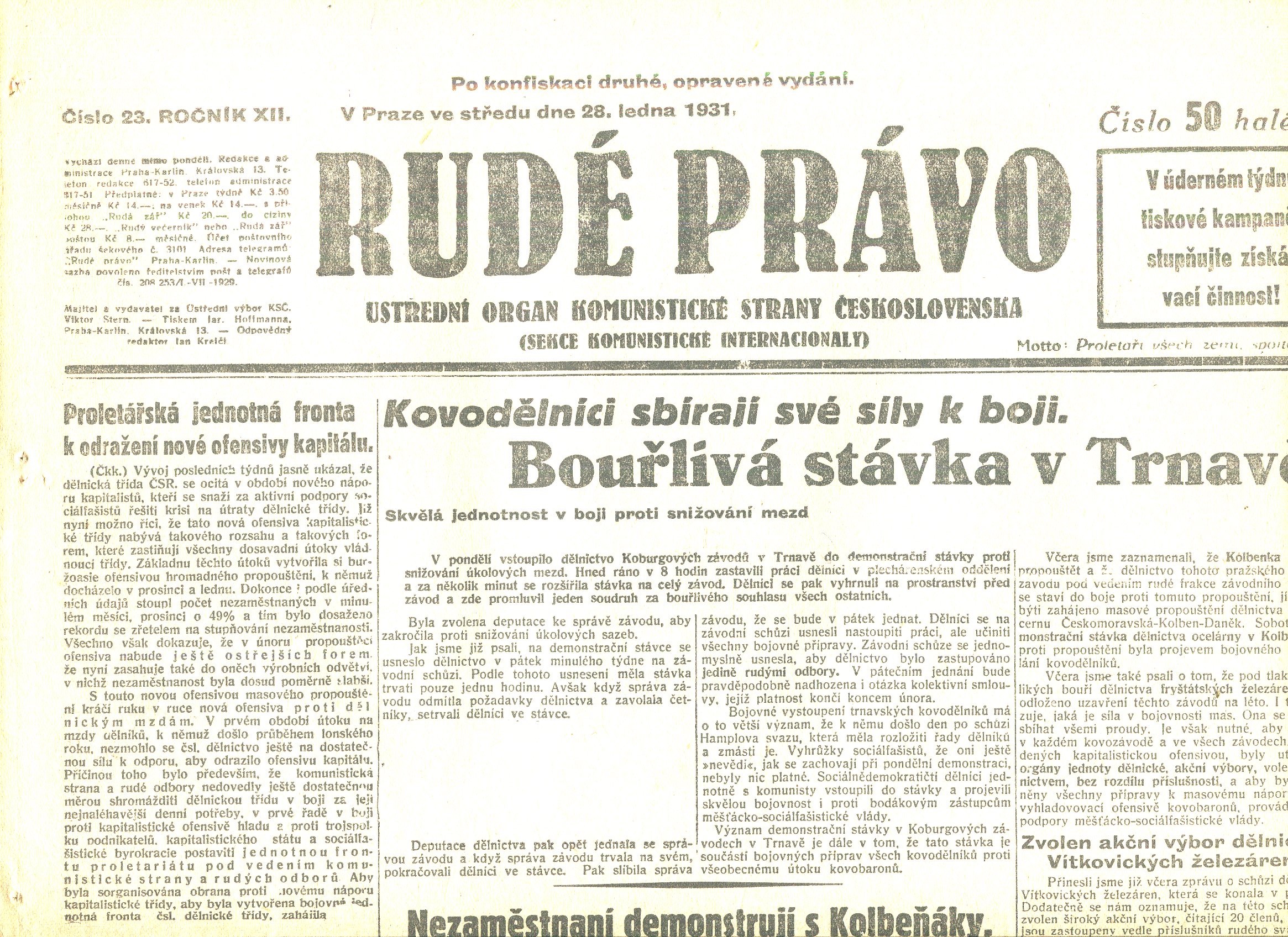Stav velmi dobrý, první strana je utržena a u hřbetu jsou skvrnky