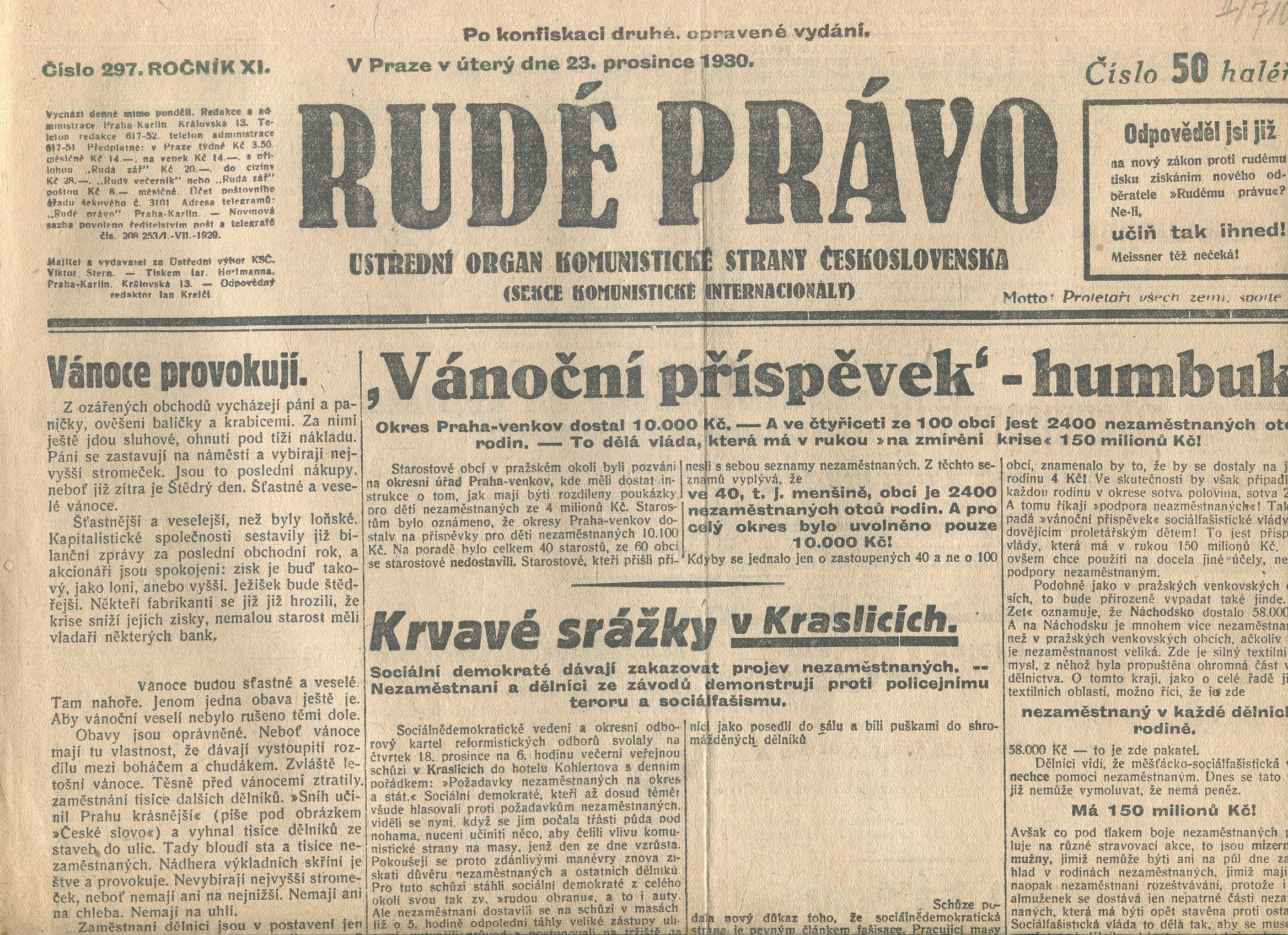 Přehnuté složky, rozměry: 32 x 48 cm, noviny nejsou kompletní pouze 4 strany se 6