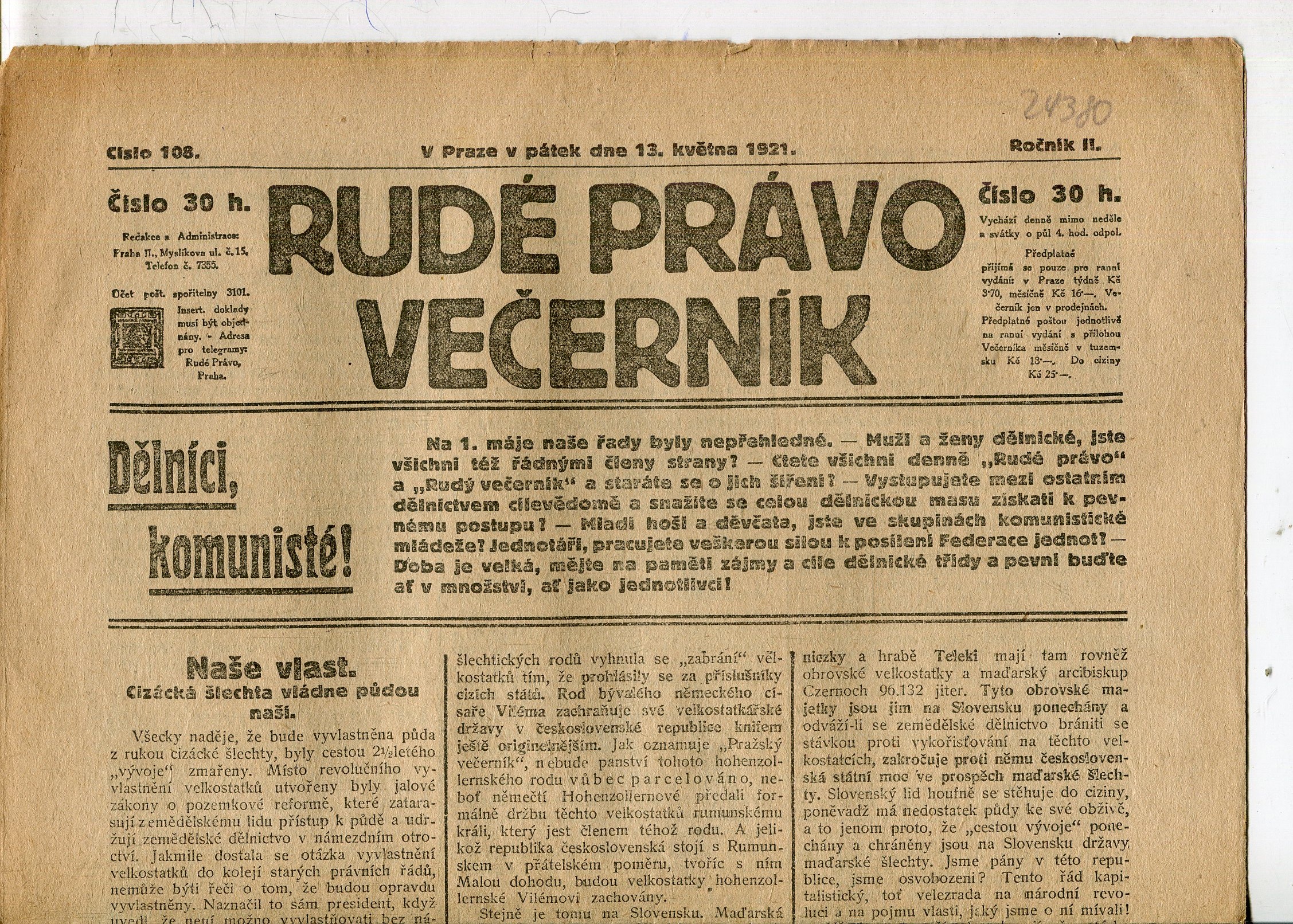 ![Rudé právo Večerník, ročník II., číslo 102/1921 - staré noviny - [komunisté, komunismus] Rudé právo Večerník, ročník II., číslo 102/1921 - staré noviny - [komunisté, komunismus]](http://www.valentinska.cz/image/cache/data/js/753073-rude-pravo-vecernik-rocni-17594939811-1024x1024.jpg)