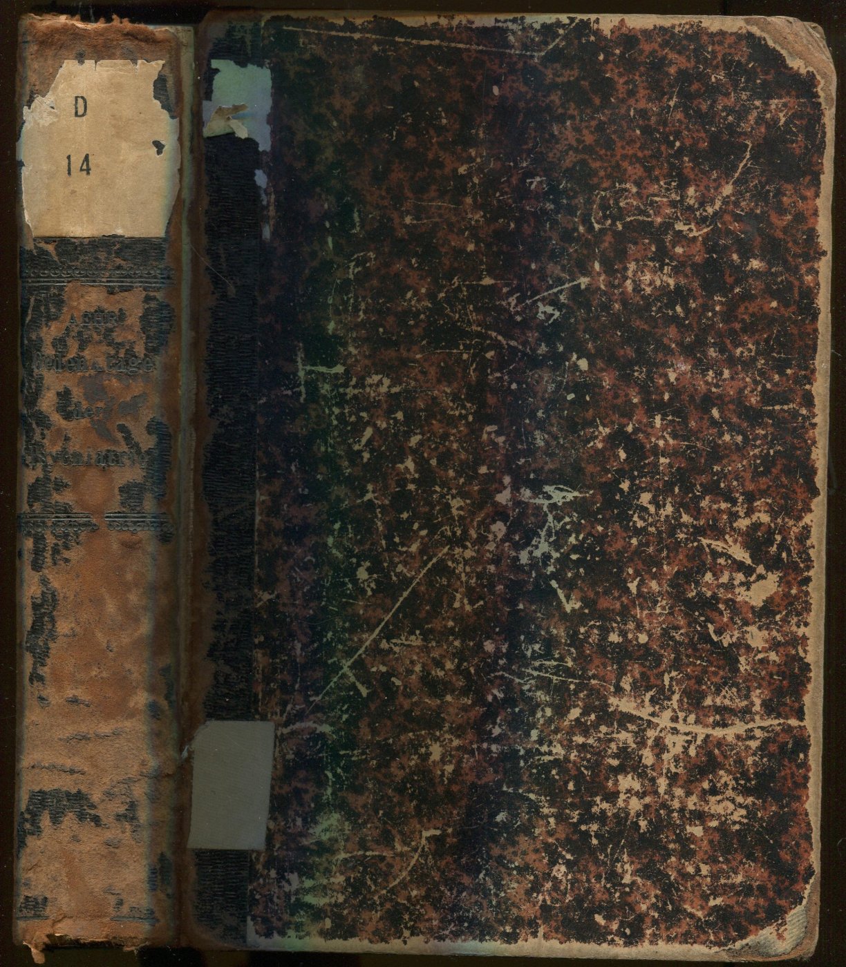 Horší stav; chybějí strany, desky zašlé, opotřebované, s odřenými rohy, zadní předsádka nahrazena novou, jen malá část stránek má žluté skvrnky od stáří.