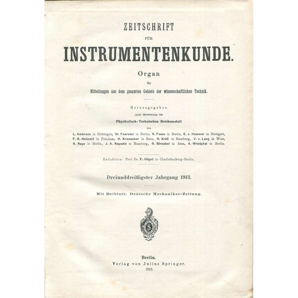 Zeitschrift für Instrumentenkunde, 33. Jahrgang, 1913, Heft 1-12 [nástroje; stroje; přístroje; věda; technika; časopis]