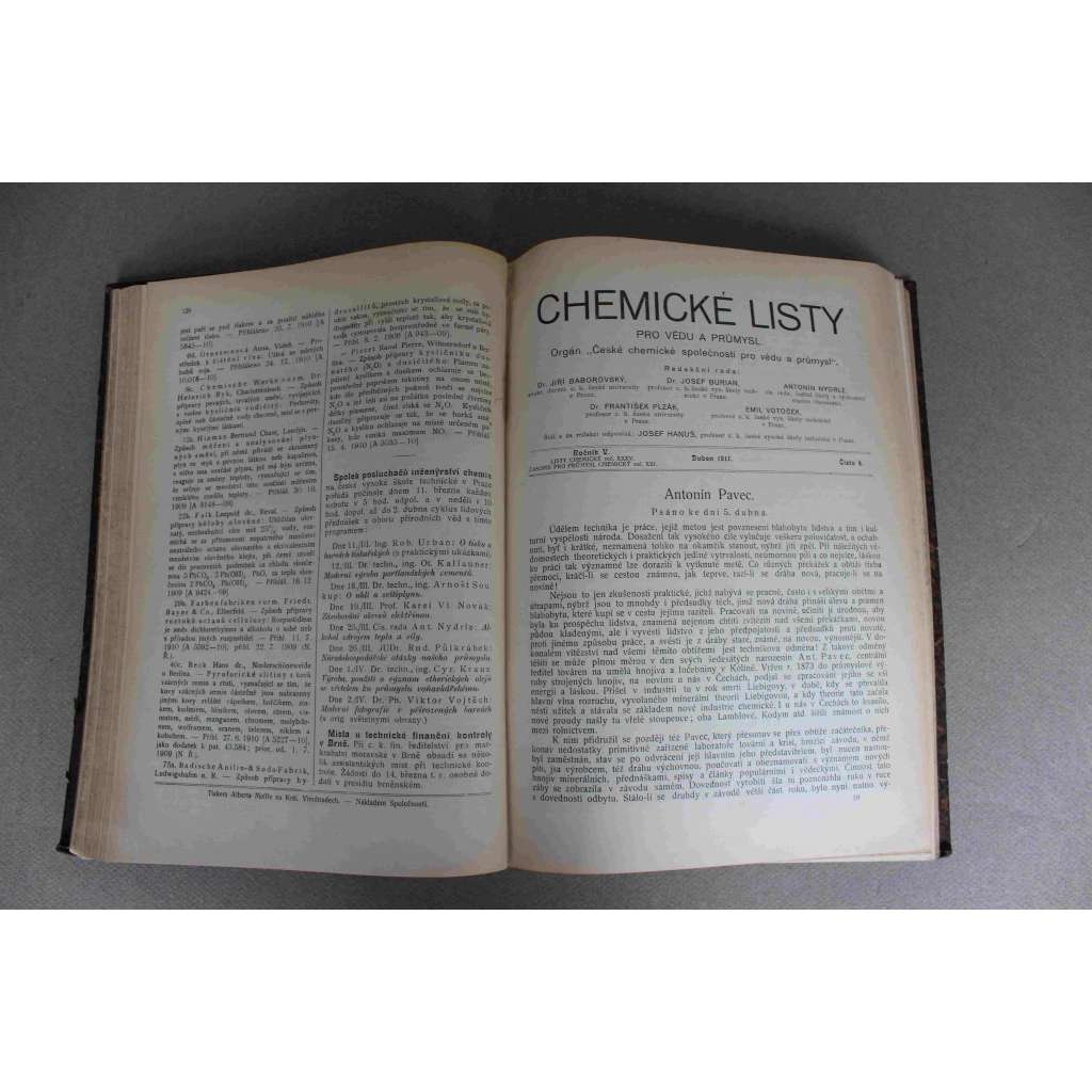 Chemické listy pro vědu a průmysl 1911. roč. 5 (časopis, chemie, mj. Jednoduchá zkouška na ketosy, O viskositě skla, Sušení brambor, Výroba piva, Aceton, O štěpení hydrazonů)