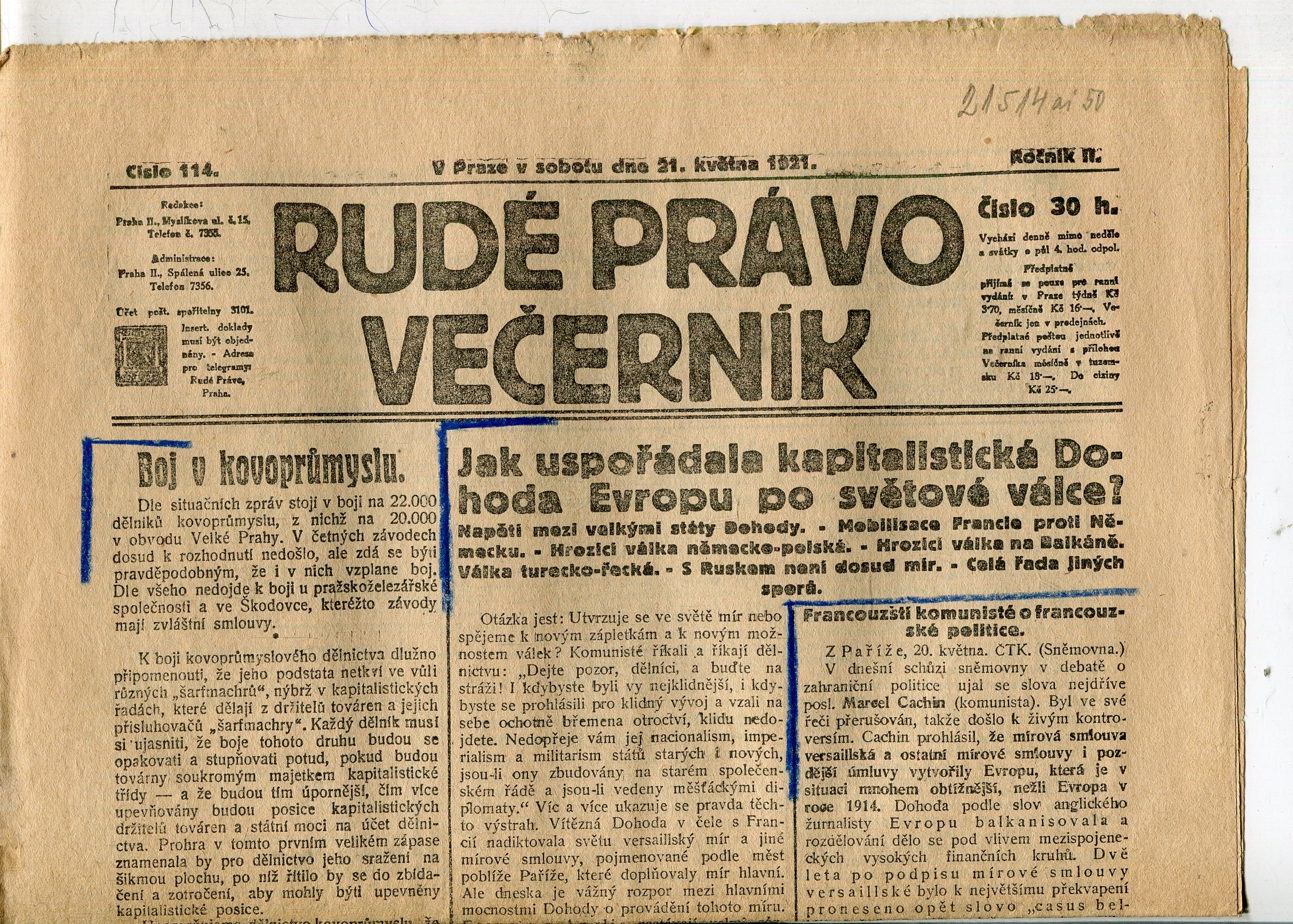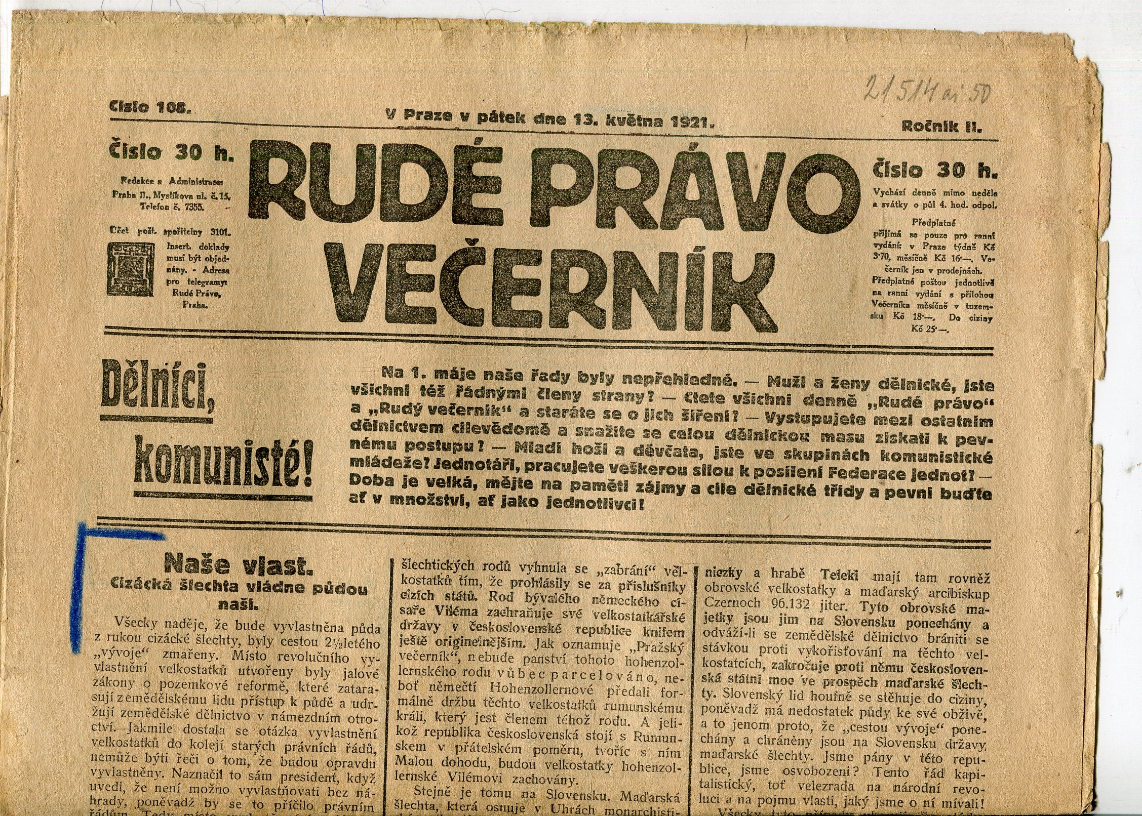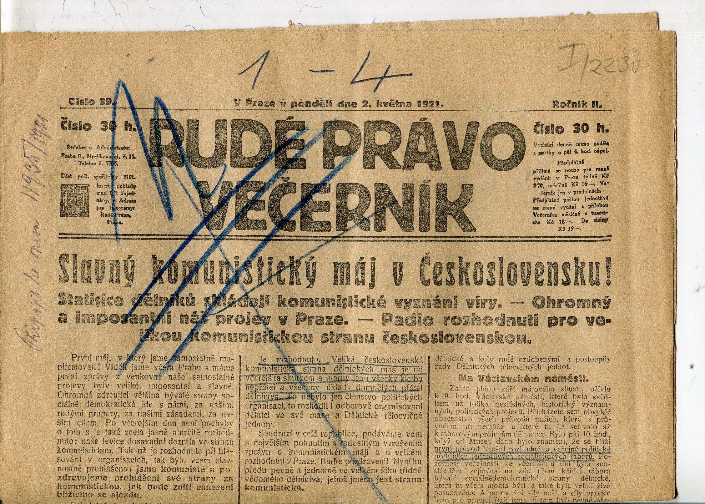 Stav dobrý, z boku lehce otřepené a ušpiněné, v textu je zatrženo pastelkou