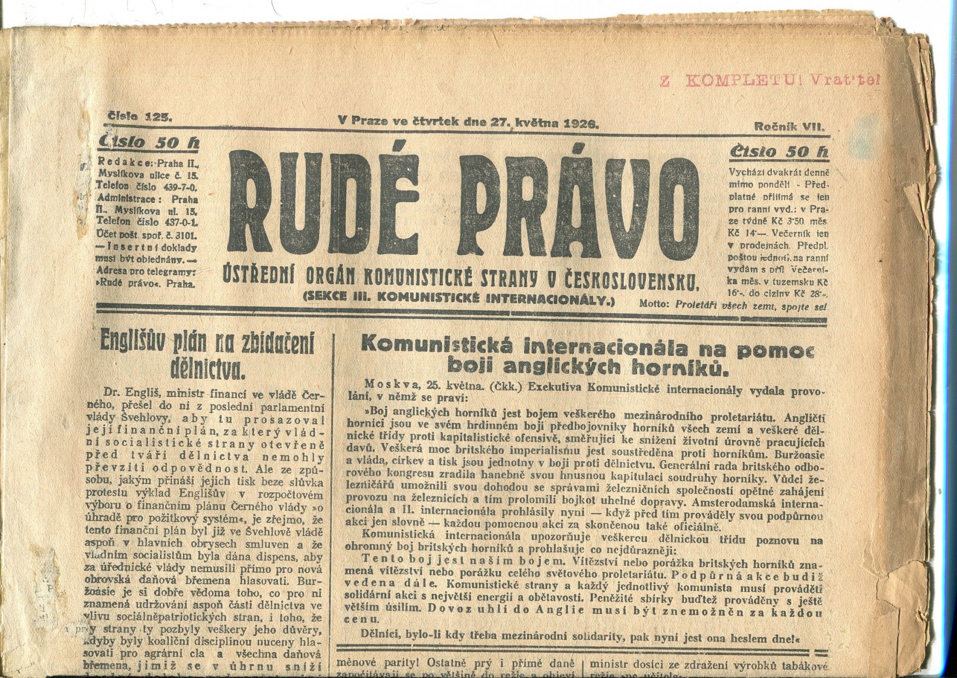 Stav dobrý, v horní části ušpiněné se ztrátou