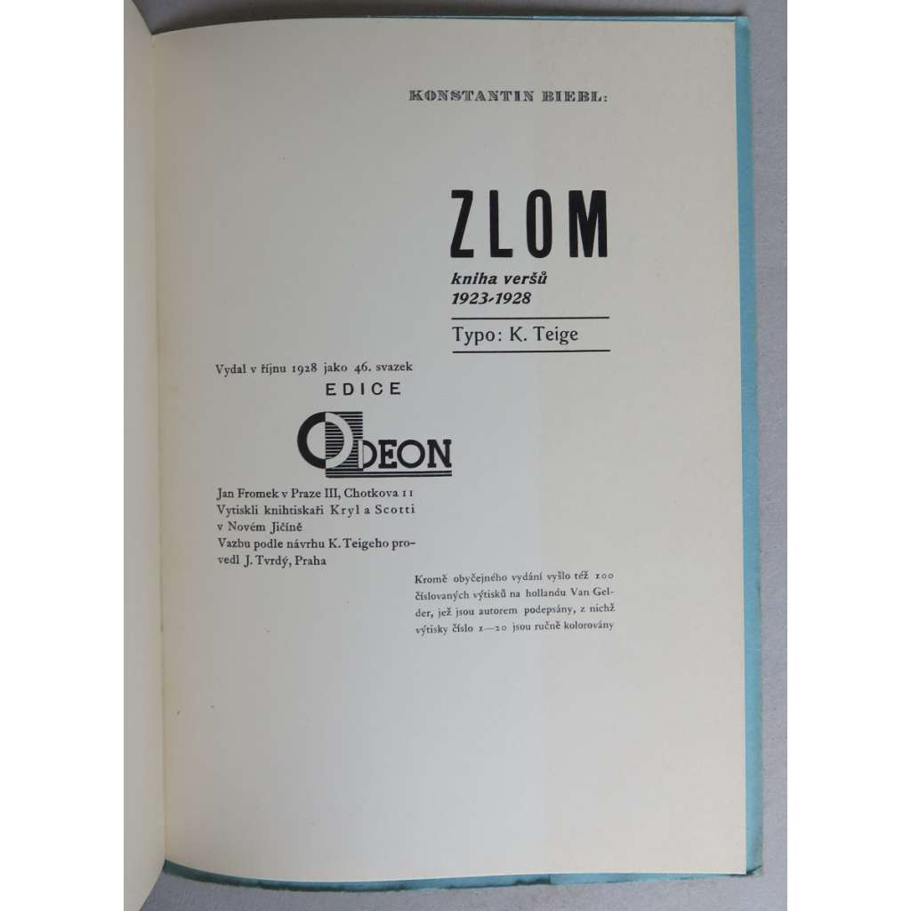 Zlom. Kniha veršů 1923–1928 - 4x ilustrace Karel Teige [avantgardní kompozice; edice Odeon]