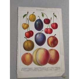 Mirabelka, švestka, třešeň - Belbe Mirabelle, Pflaume, Kirsche - barevná chromolitografie cca 1890, grafika, nesignováno