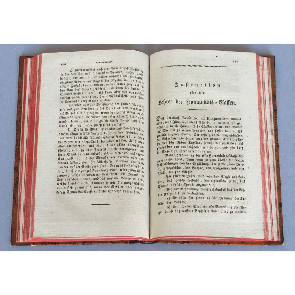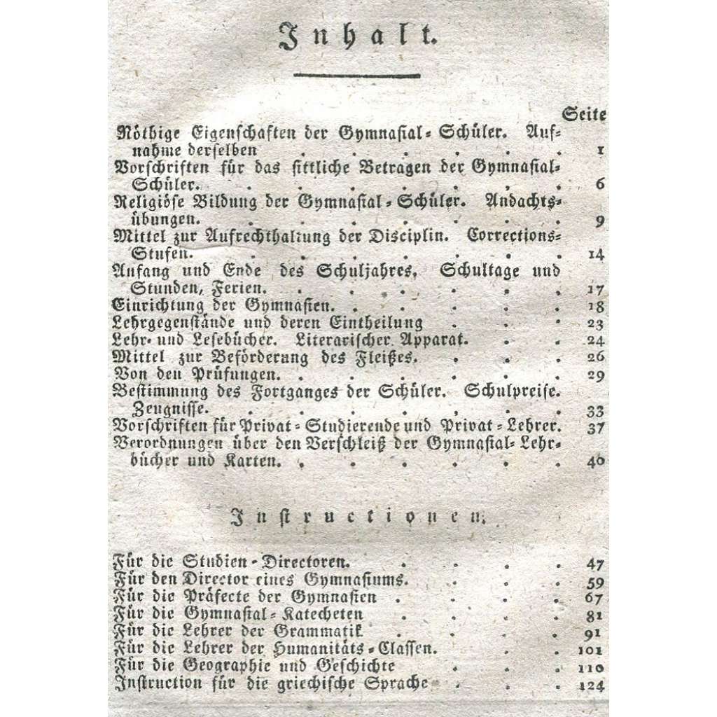 Sbírka nařízení, předpisů a pokynů pro gymnázia v česko-rakouských dědičných zemích, viz foto pro obsah. Kniha obsahuje 12 tabulí se vzorovými formuláři. Třetí vydání.