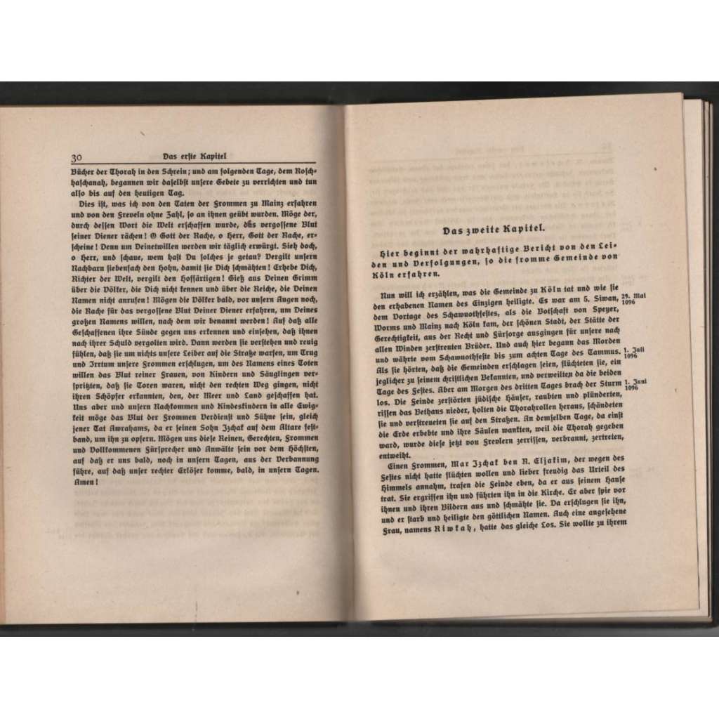 Vydání: Berlin: Jüdischer Verlag 1919. Pův. plátěná vazba se zlaceným titulem na přední desce a obrázkem na deskách, 79 stran psaných frakturou, 8° (14 x 20,5 cm)