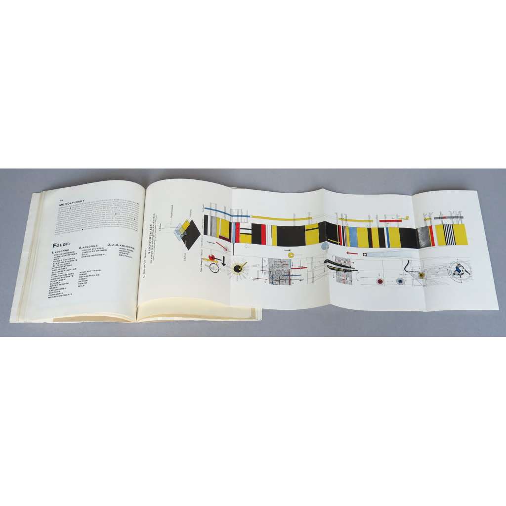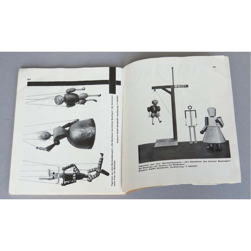 První vydání sborníku "Jeviště na Bauhausu", čtvrtého svazku řady "Bauhausbücher" vydávané proslulou avantgardní uměleckou školou. Edici řídili Walter Gropius a László Moholy-Nagy.