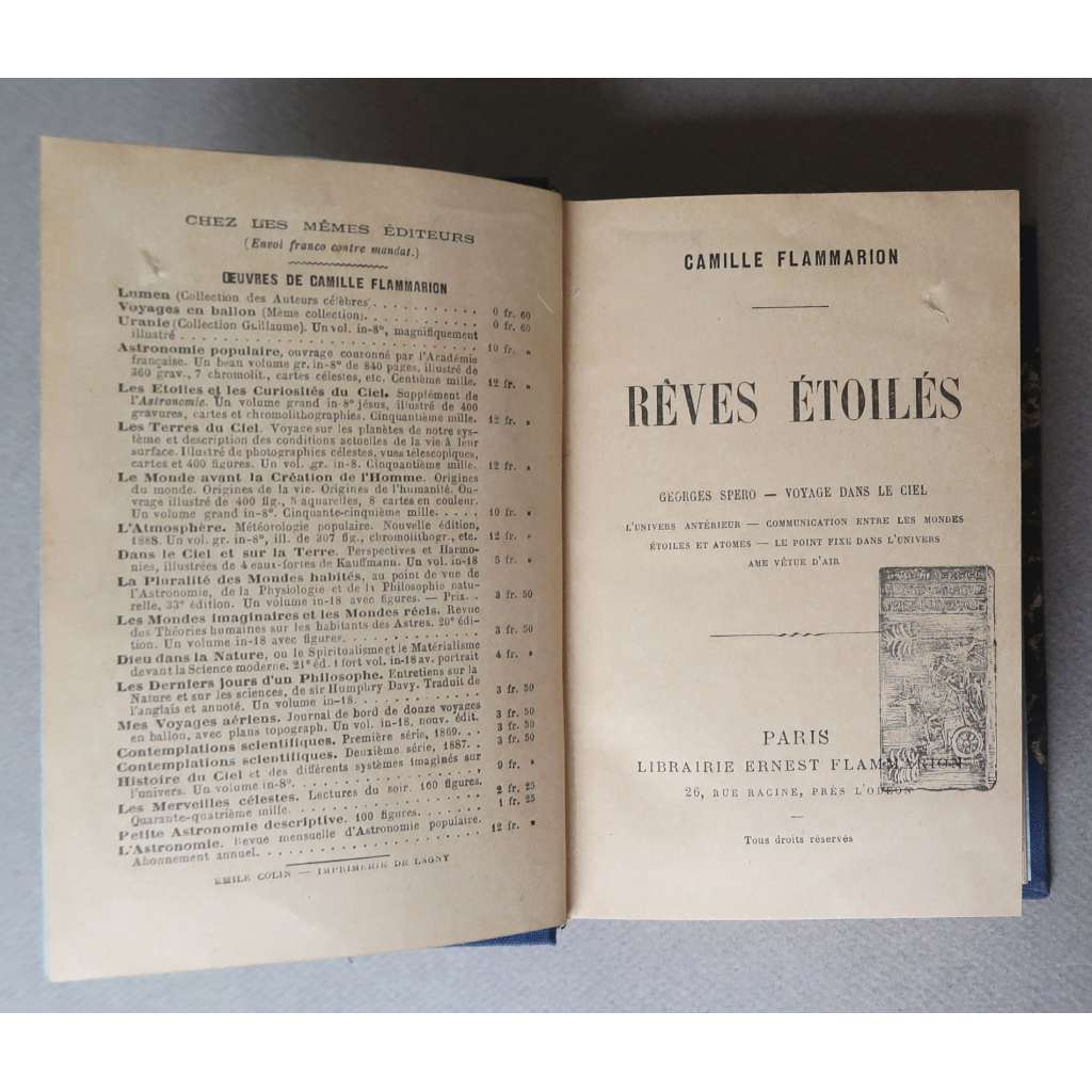 1. C. Flammarion: Reves Étoiles: Georges Spero – Voyage dans le Ciel  Paris [1888], 252 stran.