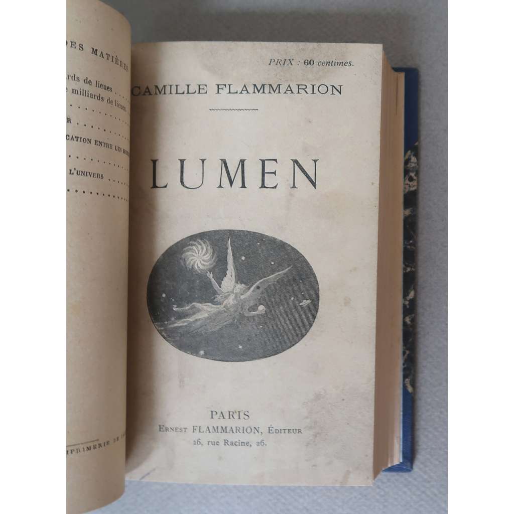 2. C. Flammarion: Lumen. Cinquantiéme mille, Paris. 252 stran, přední strana původní obálky vevázána.