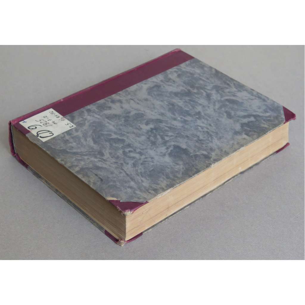 Stav knihy: Dobrý stav; desky opotřebované, zadní deska s nalepeným štítkem, podél pokryvu hřbetu jsou praskliny, na přední předsádce razítka a poznámky knihovny, ořízka zažloutlá, na několika stránkách je razítko knihovny.